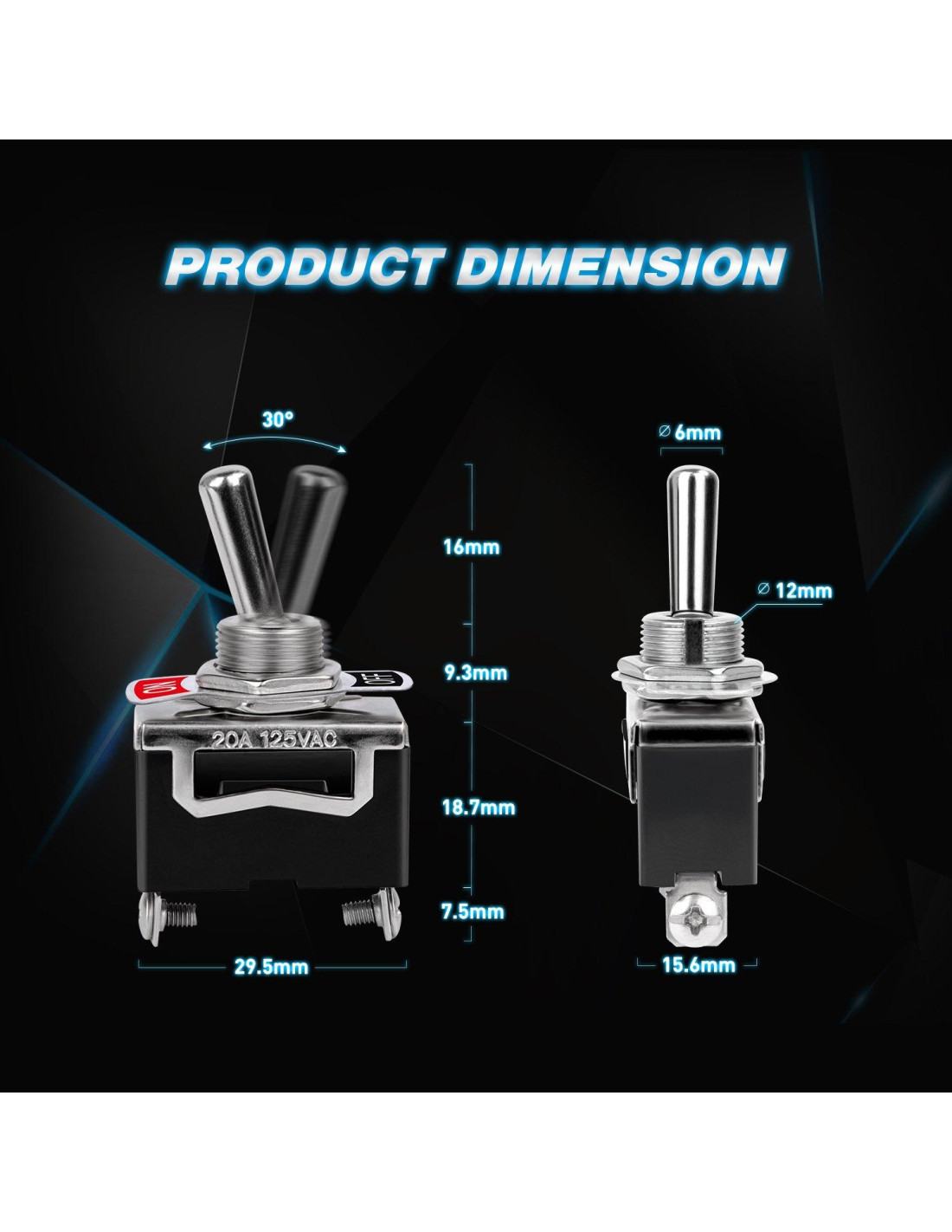 1. Tipo de conector: SPST, 2 terminales pin on/off. Potencia: 15A 250Vac/20A 125Vac paquete incluye: 5 interruptores de palanca, 5 tapas impermeables.