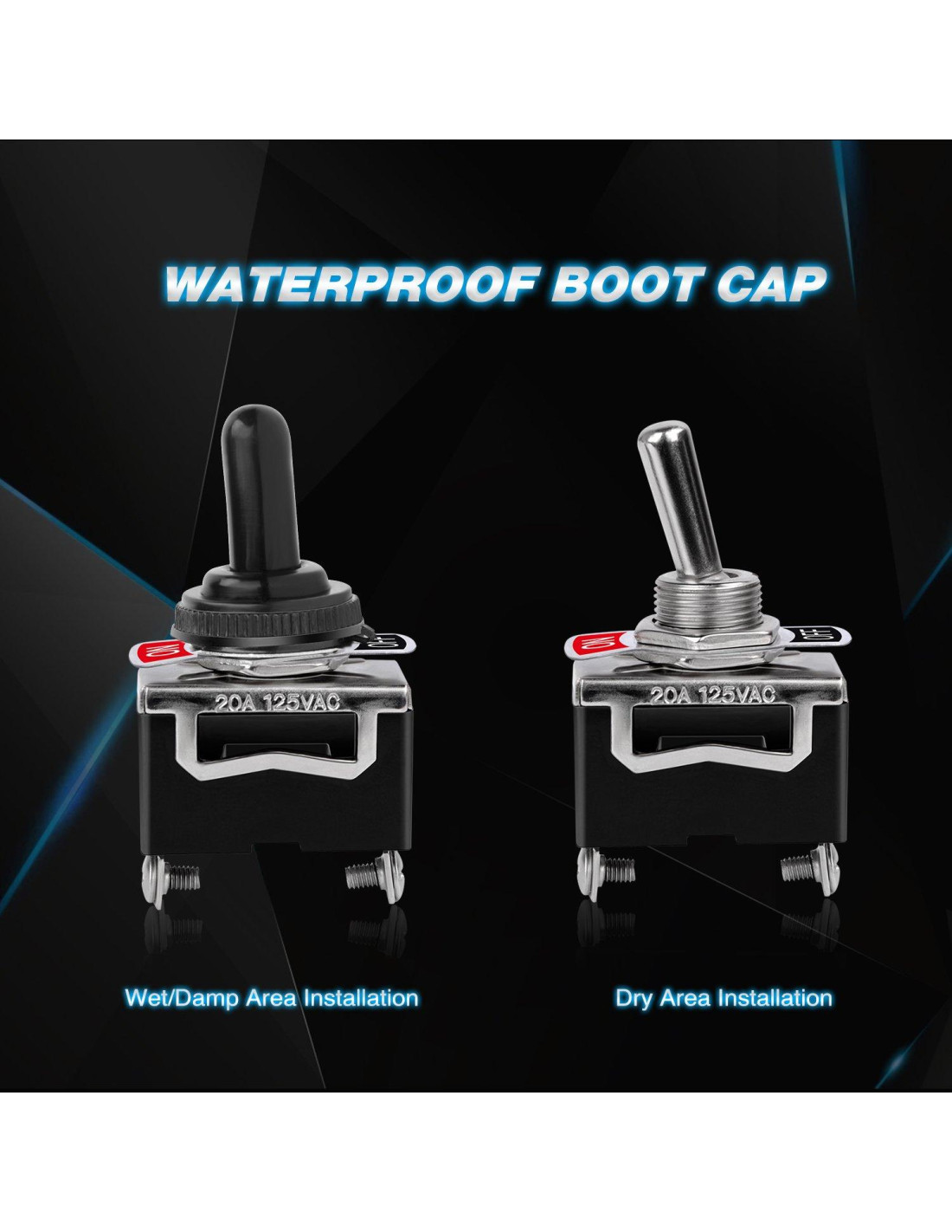 - Paquete incluye: 5 interruptores de palanca, 5 tapas impermeables