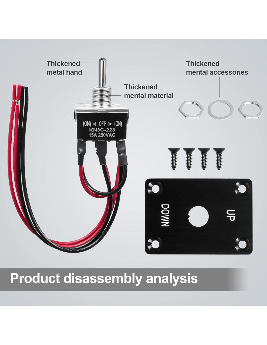 - Parámetros del producto: Corriente y Voltaje: 15A-250V AC/DC Terminal: 6-pines Tamaño del deflector impermeable: 63.5mm * 44.7mm * 2.5mm (largo*ancho*espesor) Paquete incluye: 1pcs interruptor de palanca, 1pcs tapa impermeable, 1pcs deflector impermeable