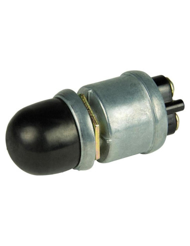 Interruptor de polo único, de un solo tiro que enciende y apaga un circuito. Puede ser utilizado para el limpiaparabrisas intermitente o control de bocina. Tapa de reemplazo 1001501. El voltaje nominal es de 6-36v DC. Calificado para 35A a 12V DC. Terminales de tornillo #8-32. Se adapta a paneles de hasta 2.54 centímetros de grosor. Reemplaza el número de parte de Cole hersee m-626.