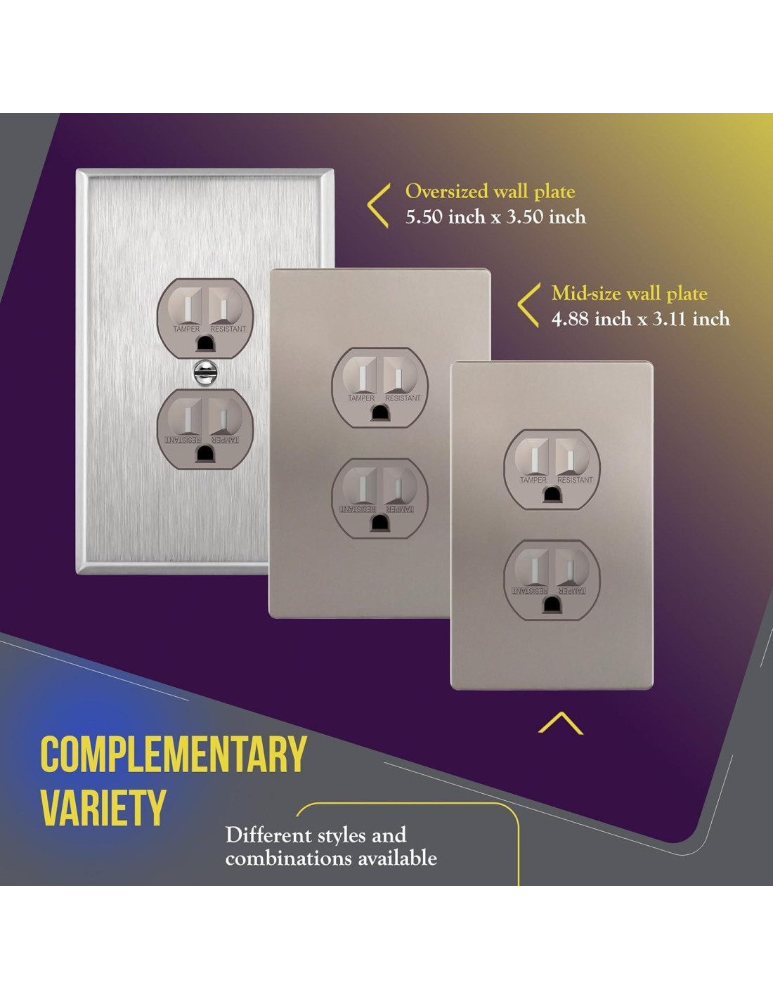 - Diseño superior de enchufe doble a prueba de manipulaciones de nuestra Serie Elite; reemplaza cualquier enchufe eléctrico de pared de 1-gang; la cara del receptáculo tiene un acabado metálico suave; adecuado para ubicaciones residenciales como hogares, apartamentos y condominios, así como para ubicaciones comerciales que solo requieren un enchufe de 15A, como edificios corporativos, hoteles y restaurantes