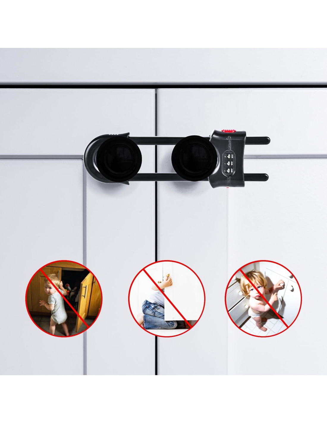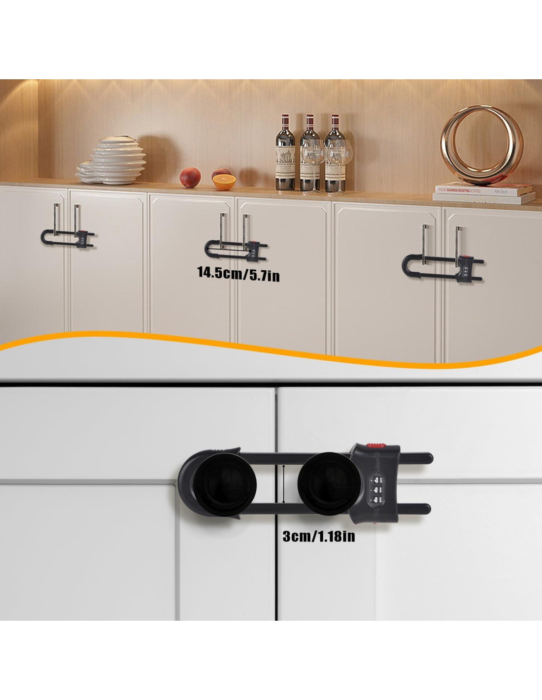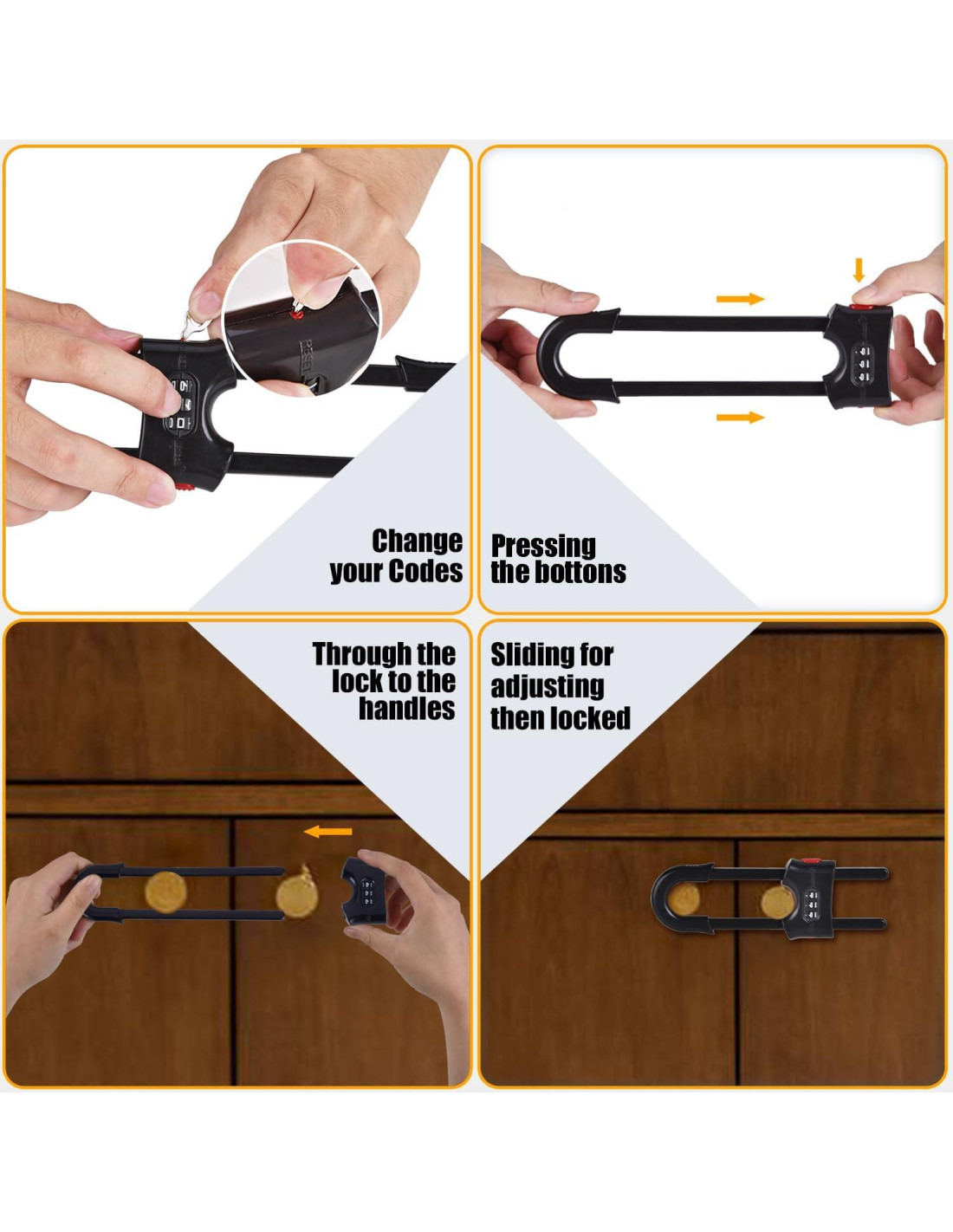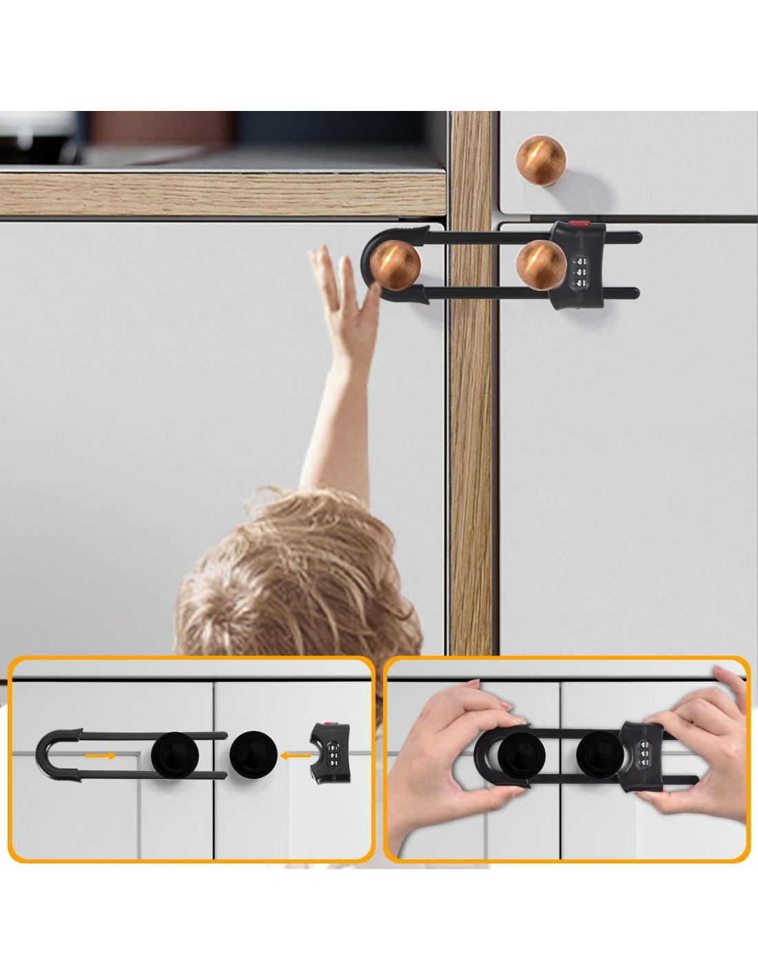 - CERRADURA ACTUALIZADA Cerraduras portátiles en forma de U que se pueden usar una y otra vez sin dañar los muebles, incluso se pueden llevar de viaje. La configuración de contraseña proporciona protección adicional para que incluso los niños mayores no puedan abrirla