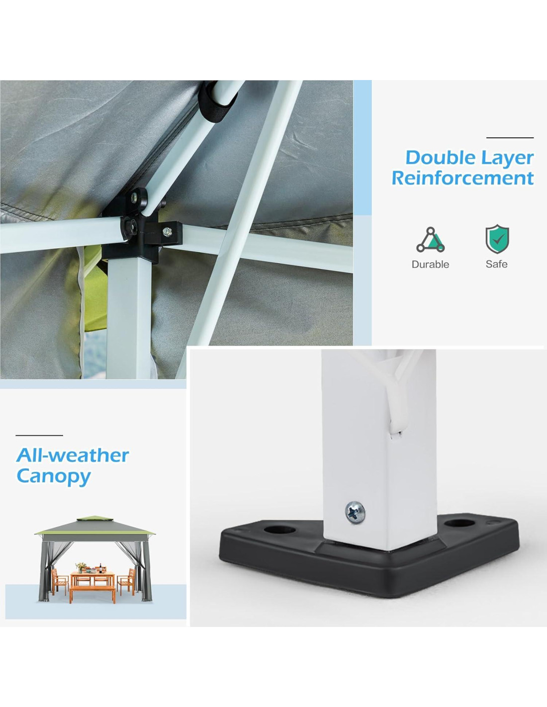 - Doble Techo: El diseño de doble techo ventilado mejora la circulación del aire y la resistencia al viento, manteniéndote fresco incluso en días calurosos, mientras que la malla incorporada entre las partes superiores mantiene a raya a los mosquitos y los insectos voladores. Ideal para uso en todas las estaciones y configuraciones versátiles de patio o jardín.