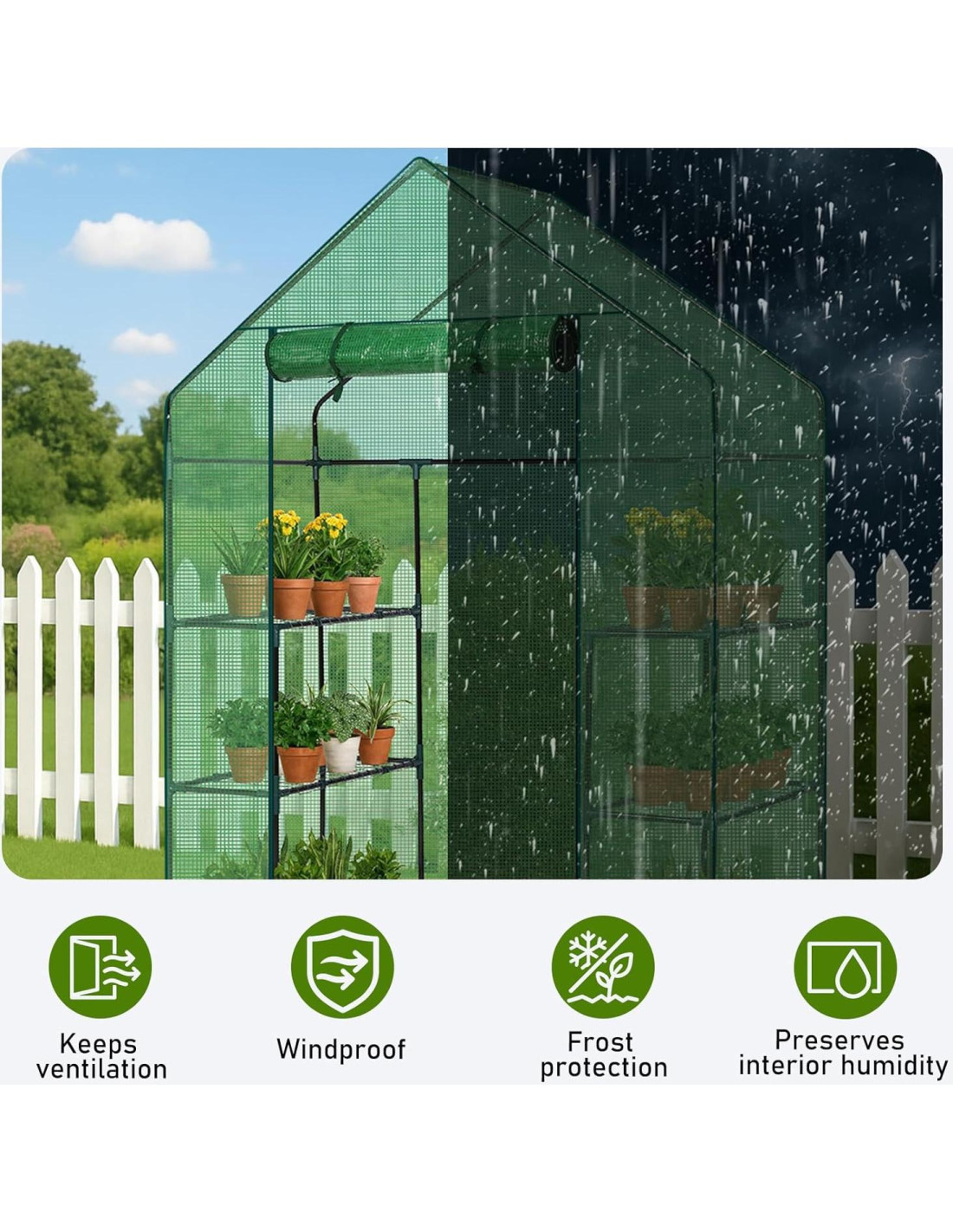 - GRAN ESPACIO El tamaño total del invernadero portátil es 56" x29" x 77" (142.2 cm x 73.7 cm x 195.6 cm), que proporciona un espacio amplio para tus plantas, flores y verduras. El invernadero versátil tiene una entrada de 59" (149.9 cm) de altura en la parte delantera para un fácil acceso para cuidar las plantas y lograr una circulación de aire óptima