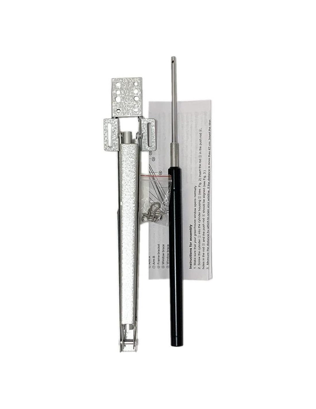 Hecho de acero galvanizado de alta calidad. Duradero y fuerte para un uso prolongado. Energía solar, sin costo de operación. Abre o cierra automáticamente las ventilaciones del invernadero a medida que la temperatura sube o baja. Este abridor de ventana automático te ayudará a mantener la mejor temperatura de crecimiento y evitará que tu invernadero se sobrecaliente. Levanta hasta 7 kg, adecuado para la mayoría de las ventanas y ventilaciones de invernadero. Viene con un paquete de accesorios de instalación y un manual detallado para una fácil instalación. La temperatura de apertura inicial se puede ajustar de 16 C a 25 C. (Ajuste: Gira el cilindro en sentido horario para bajar la temperatura de apertura o en sentido antihorario para aumentarla). Cuando la temperatura alcanza 30 C o más, la ventana se abrirá completamente. La distancia máxima de apertura, desde el alféizar de la ventana hasta el riel inferior, es de aproximadamente 45 cm. El peso máximo de la ventana es de 7 kg. Todas las partes móviles deben ser lubricadas después de la instalación. Se recomienda lubricar ocasionalmente. Por favor, retira el cilindro del abridor cuando la ventana no deba abrirse, como durante el invierno, para evitar cualquier apertura accidental debido al clima cálido. Lubrica y revisa la varilla del pistón, asegúrate de que funcione sin problemas si ha estado sin uso durante mucho tiempo. El abridor de ventilación debe ser almacenado en un lugar fresco y seco.