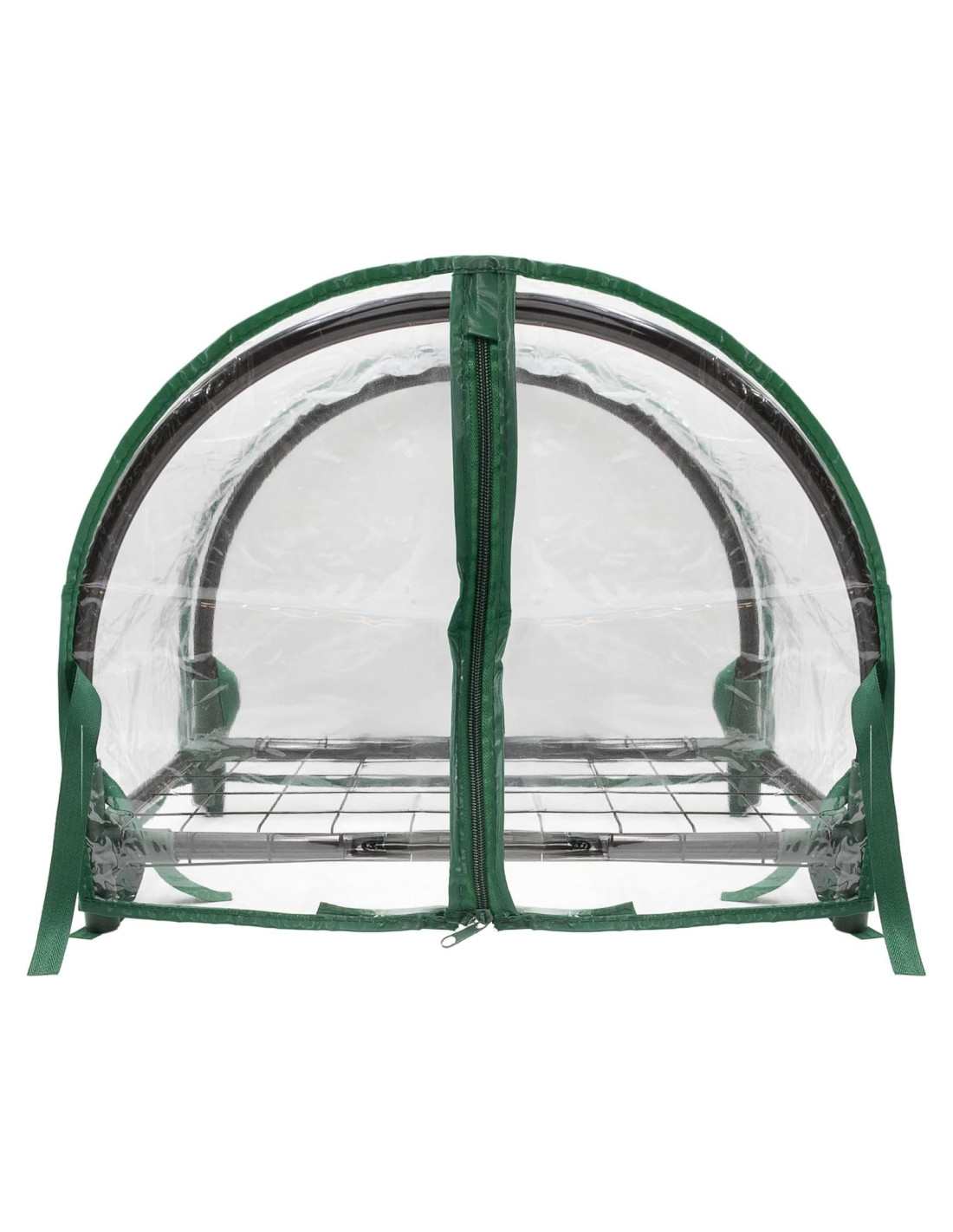 - La cubierta con ataduras seguras se ajusta sobre un marco de acero con acabado en polvo verde