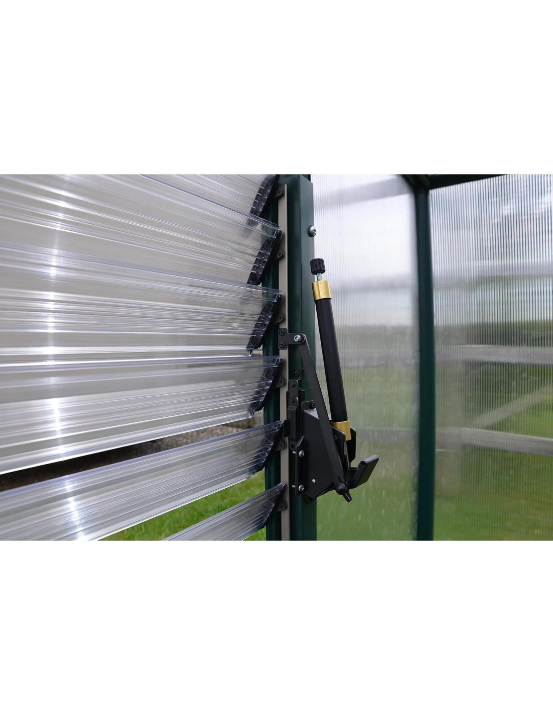 Descripción del Producto La Apertura Automática de Ventilación fue diseñada para controlar automáticamente la temperatura y proporcionar ventilación adicional en todos los invernaderos Rion. A medida que el aire dentro del invernadero se calienta, la ventilación se abre gradualmente para permitir la cantidad correcta de flujo de aire en el invernadero y se cierra cuando se alcanza la temperatura óptima. El brazo de la ventilación fue diseñado con el uso de minerales naturales que se expanden con el calor para empujar un pistón, que levanta la ventana, a medida que el aire se calienta y luego se contrae al enfriarse, cerrándose con el uso de un resorte. La Apertura Automática de Ventilación funciona sin el uso de electricidad. Información de Contacto del Fabricante 877-627-8476