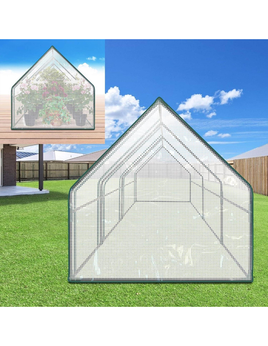 Este invernadero mini portátil es la opción perfecta para los jardineros que quieren iniciar semillas y no tienen más espacio. Presenta un cuerpo pequeño y ligero que es fácil de llevar a cualquier lugar que desees. Bien hecho de una duradera tela de poliéster blanco de calidad que permite un uso prolongado. Una gran puerta permite un acceso y ventilación muy fáciles. Nuestro invernadero es excelente para sembrar, adecuado para cultivar tus queridas plantas, flores y verduras. Proporcionará la mejor protección en días lluviosos y fríos, tus plantas pueden disfrutar del sol y crecer más saludables en este refugio de invernadero.