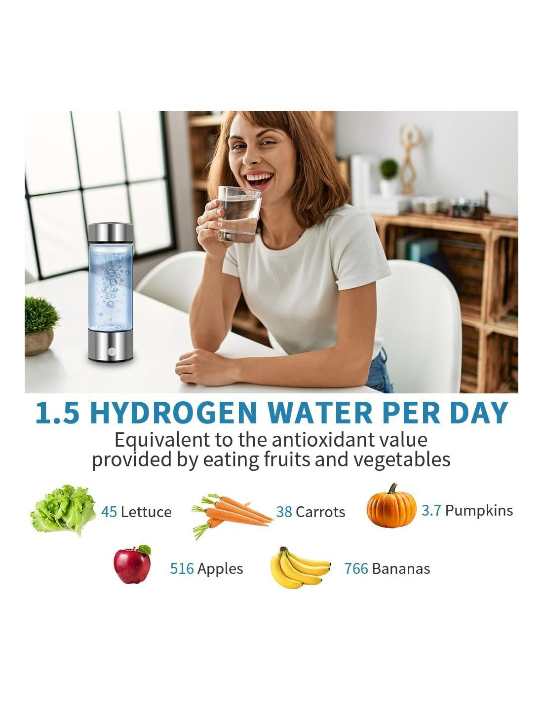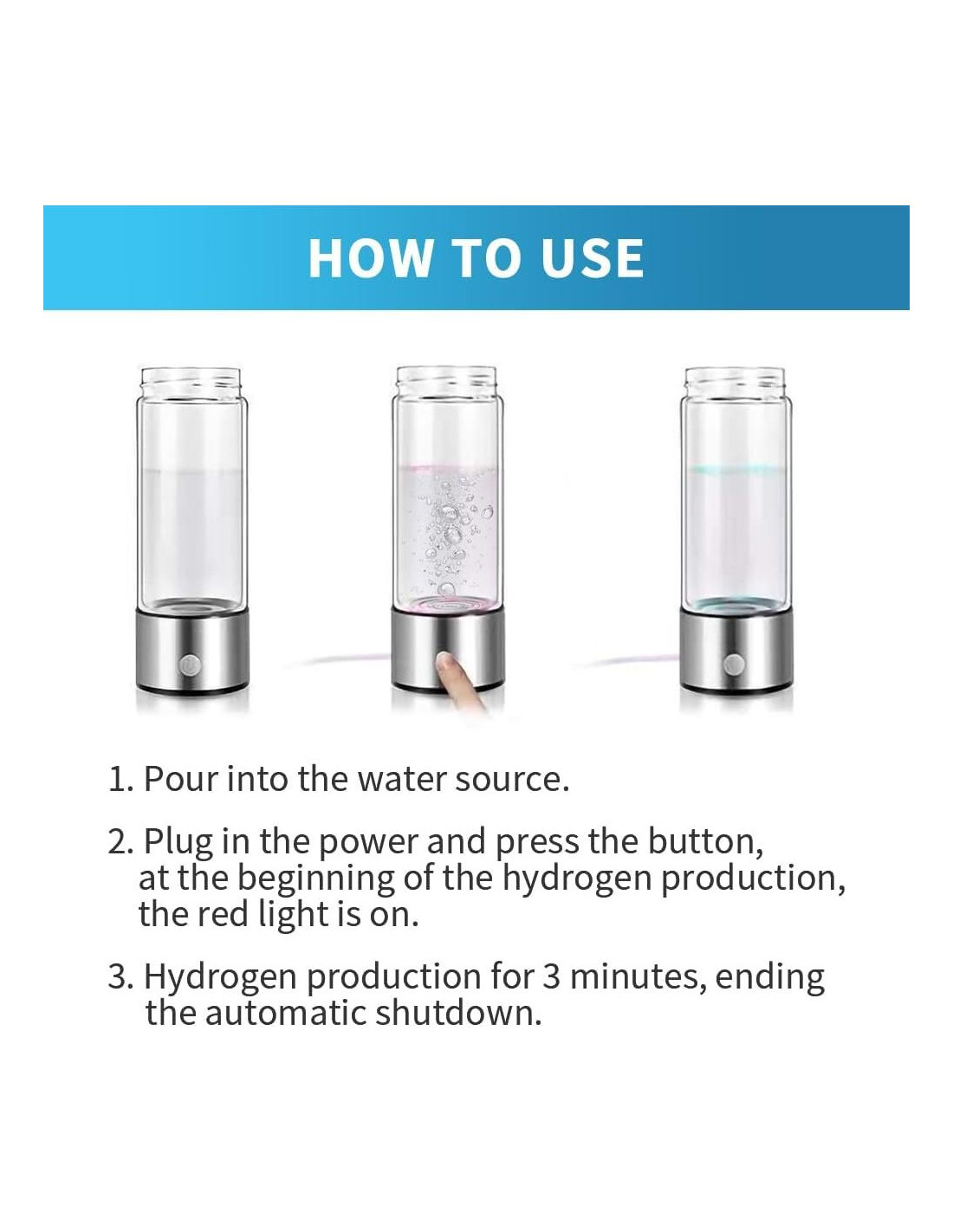 - [Regalo Ideal para Vacaciones] El agua rica en hidrógeno es rica en antioxidantes y su consumo a largo plazo ayuda a mejorar el dolor muscular y reducir la fatiga física después del ejercicio, lo que hace que la botella de agua de hidrógeno sea un gran regalo para familiares y amigos. Nota: No añadas fuentes de agua no electrolizables como jugo, leche, té, agua destilada y agua purificada.