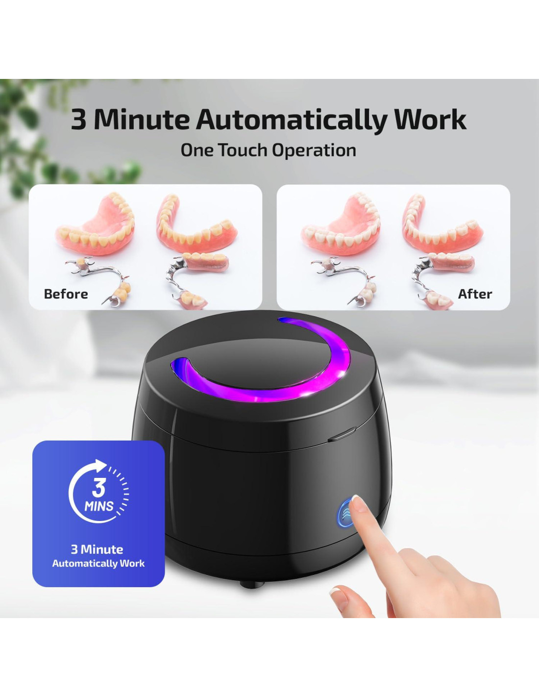 - Mini Limpiador de Retenedores con Botón Táctil: control de un toque, limpia los aparatos en solo 3 minutos. Capacidad de 180ml adecuada para retenedores, dentaduras, alineadores y protectores bucales.
