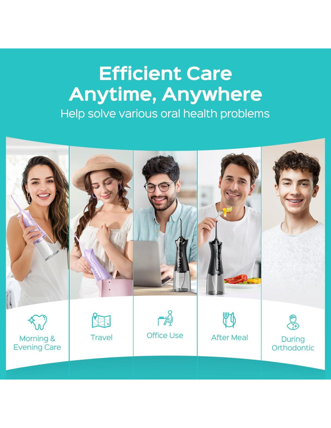 - Carga Rápida y Larga Duración de Batería: Nuestro flosser dental de agua portátil para viajes cuenta con una batería de alta capacidad que dura el doble que muchos otros modelos. El diseño de carga rápida e inalámbrico ofrece hasta un mes de uso con una sola carga. Compacto y ligero, se adapta fácilmente a mochilas o maletas, perfecto para oficinas, residencias estudiantiles o viajes. Diseñado para ayudarte a mantener una sonrisa fresca y segura en cualquier momento y lugar.