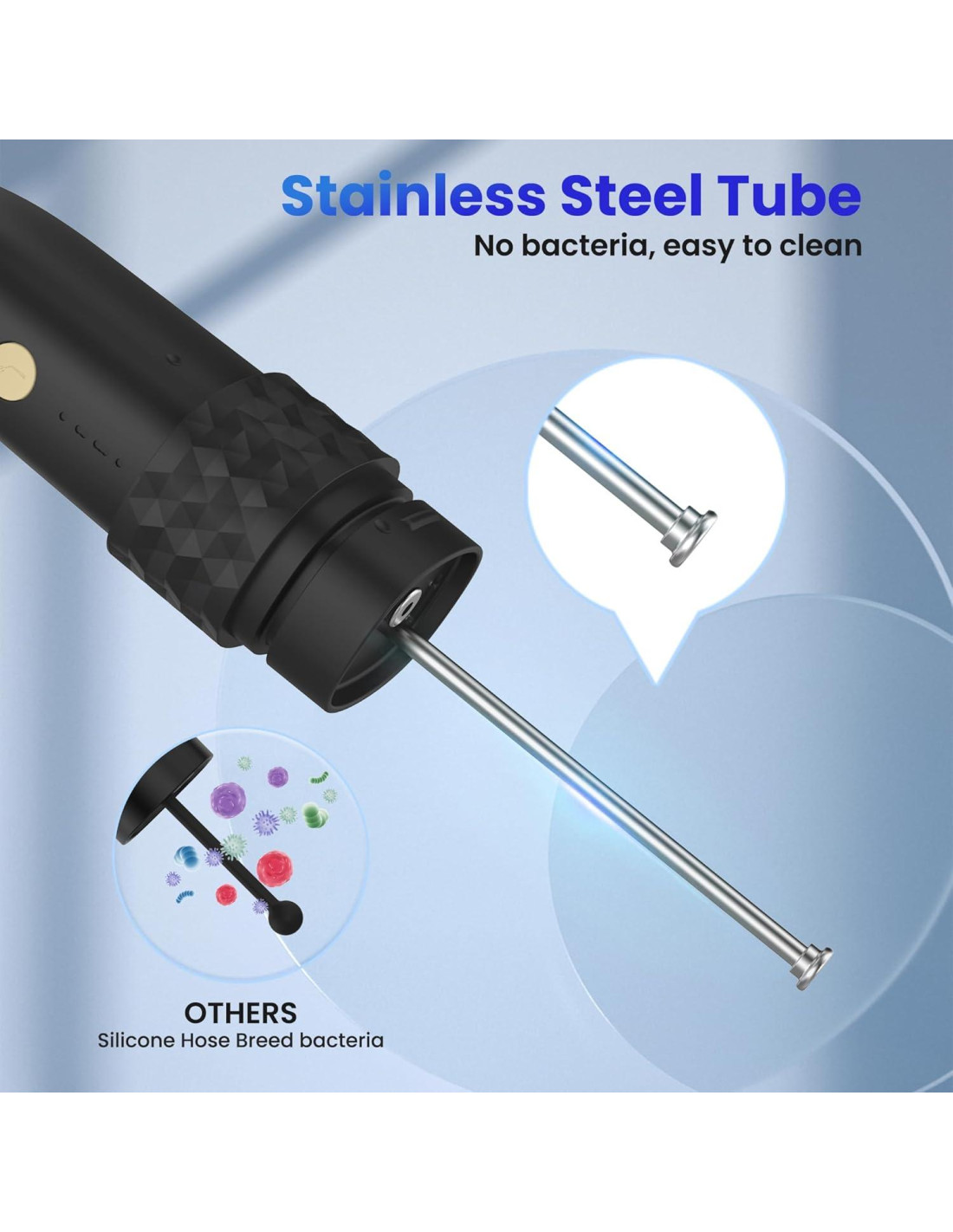 - [Hilo dental portátil y tubo de agua de acero inoxidable] El hilo dental con cepillo de dientes eléctrico combina dos dispositivos en uno, y su tamaño mini se puede meter fácilmente en su bolsillo. El tanque de agua puede usarse como un vaso para enjuagar (Capacidad 110ml). El tubo de agua de acero inoxidable es muy duradero. No hay necesidad de preocuparse por el moho y la deformación (Nota: El tubo de acero inoxidable retráctil está en la parte inferior del cepillo de dientes y se puede usar cuando se saca, no es necesario instalar otros tubos de agua)