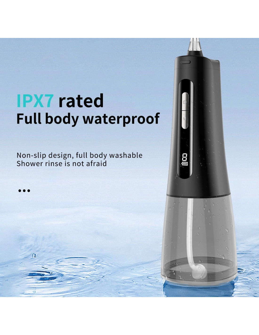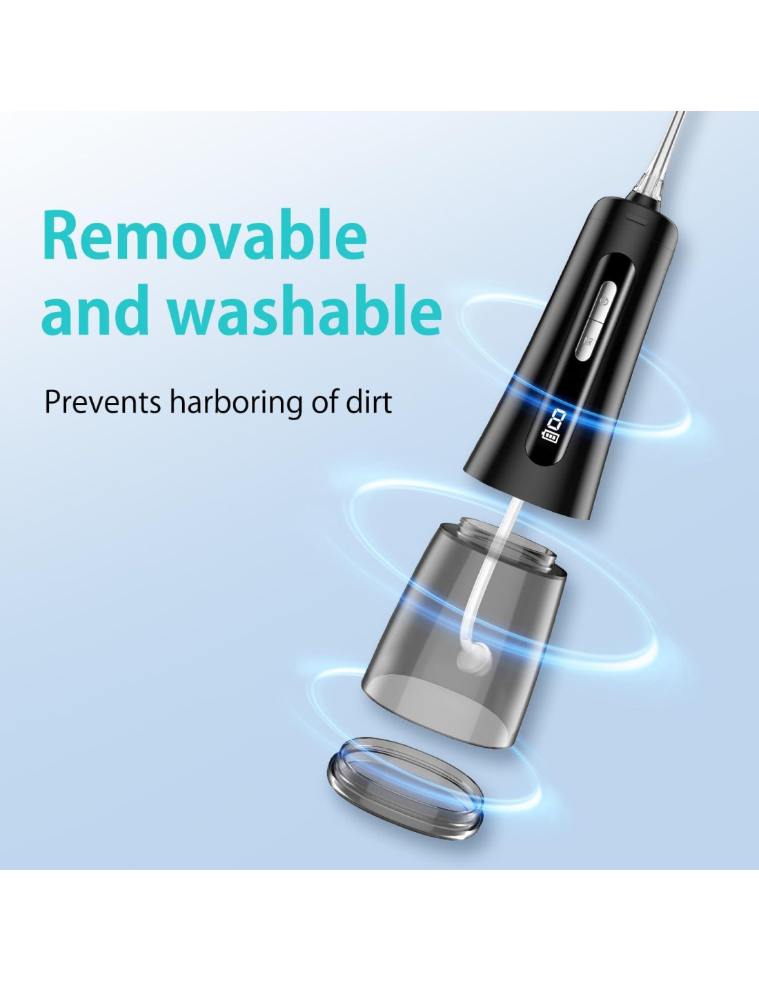- Gran Depósito de Agua e IPX7 Impermeable: El depósito de 300ml es suficiente para una limpieza completa e ininterrumpida. Es removible para una fácil limpieza. Con protección impermeable IPX7, puedes usar este hilo dental de agua de manera segura en la ducha.