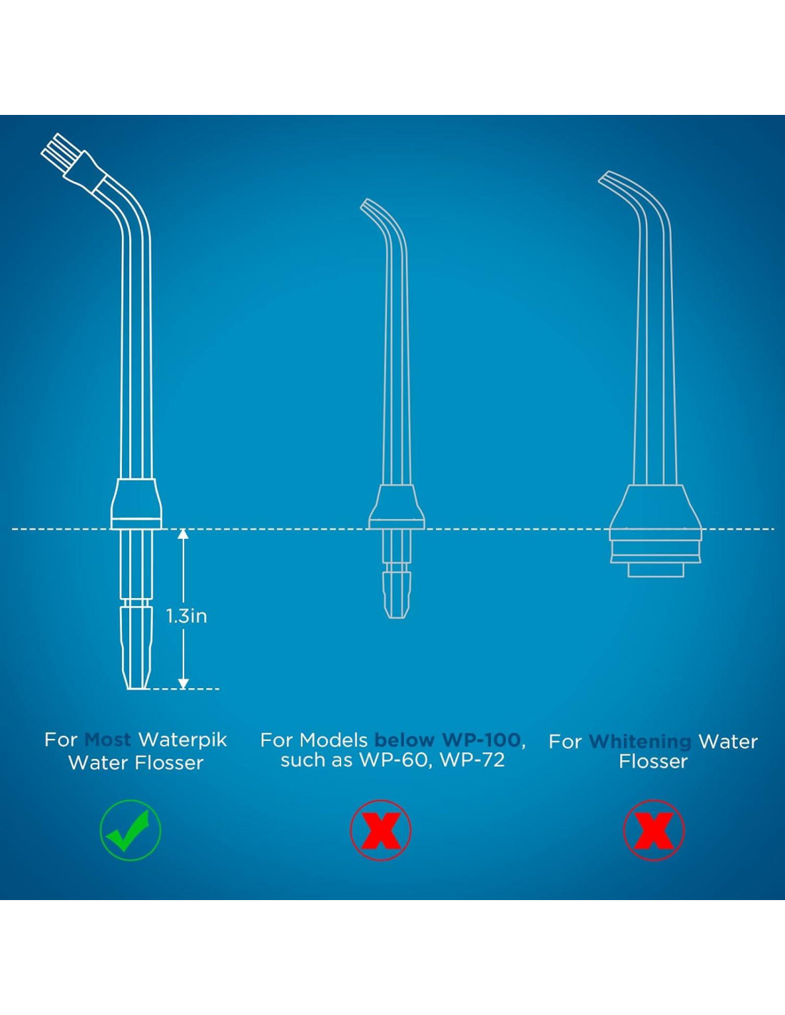- Se ajusta a la mayoría de los modelos Waterpik, como Aquarius, Cuidado Completo, Inalámbrico, Para Niños, ION, Nano, Cuidado Orto, Radiance, Viajero, Ultra.