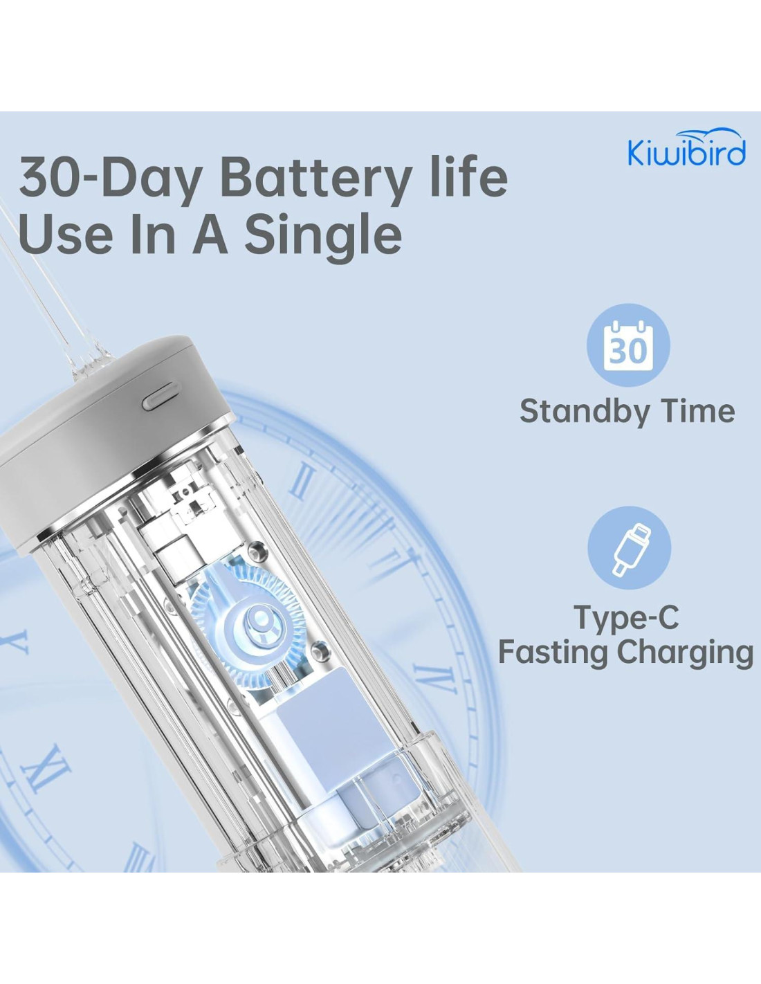 - Diseño Compacto y Portátil con Larga Duración de Batería: Este irrigador de agua inalámbrico cuenta con un diseño elegante y retráctil, pesando solo 230g (0.51 lbs) y plegándose a solo 14.86 cm (5.85 pulgadas), lo que lo hace altamente portátil y fácil de almacenar con una boquilla incluida. La batería recargable de 1100mAh puede durar aproximadamente 30 días con una sola carga, dependiendo del uso. Equipado con un conveniente puerto de carga Tipo-C para una recarga rápida y fácil, está diseñado para proporcionar una experiencia de irrigación confiable dondequiera que vayas.