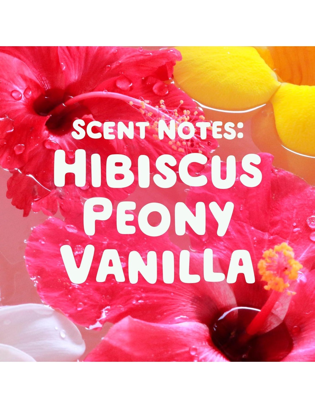 - Disponibles en un delicioso aroma Hibisco Hula, con notas de hibisco, peonía y vainilla