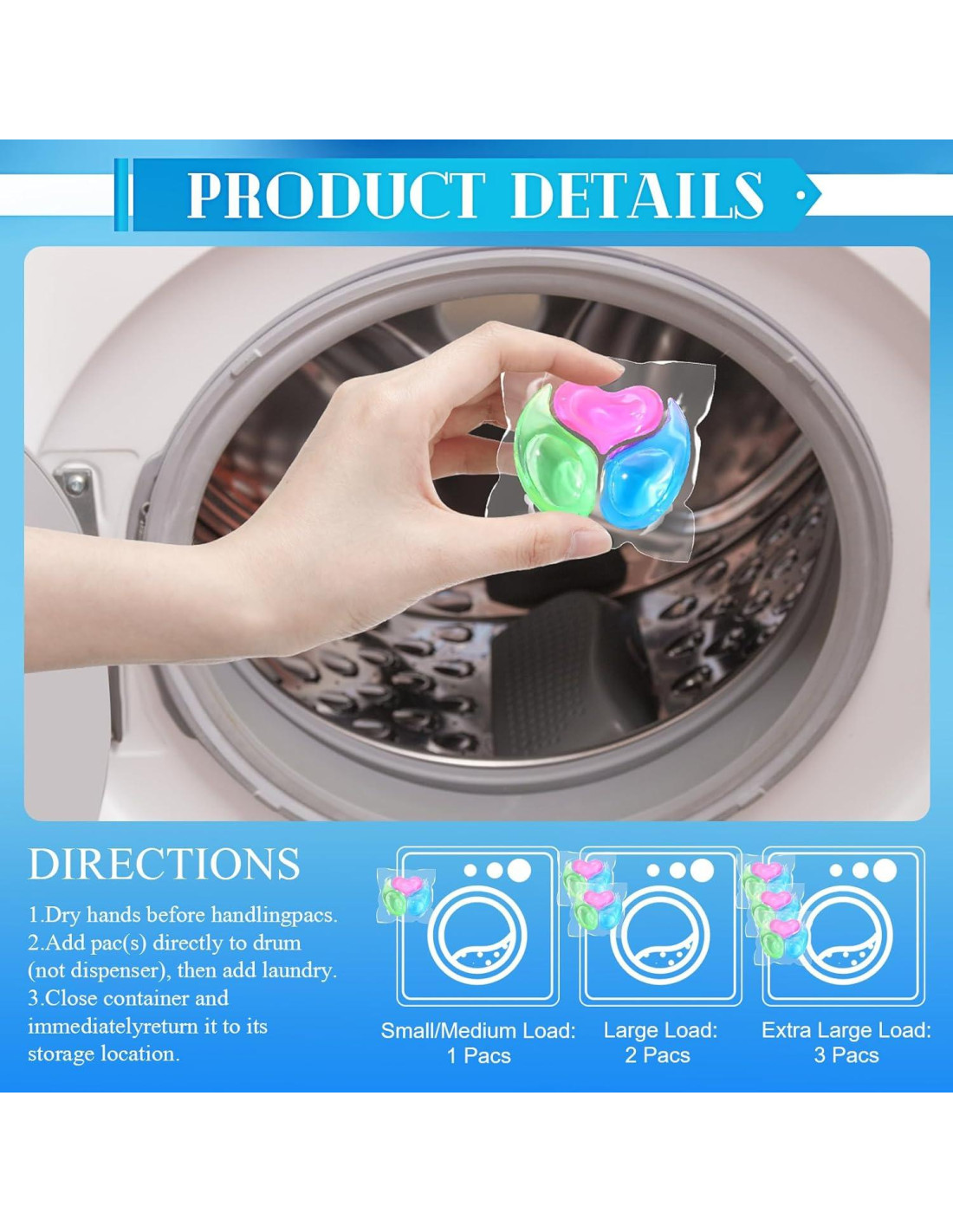 - Limpieza Profunda: las cápsulas de detergente para ropa a granel 3-en-1 con detergente concentrado, quitamanchas y protector de color; Elimina profundamente la suciedad y los olores persistentes para una frescura duradera, ideal para una variedad de telas lavables como algodón, ropa deportiva y poliéster.