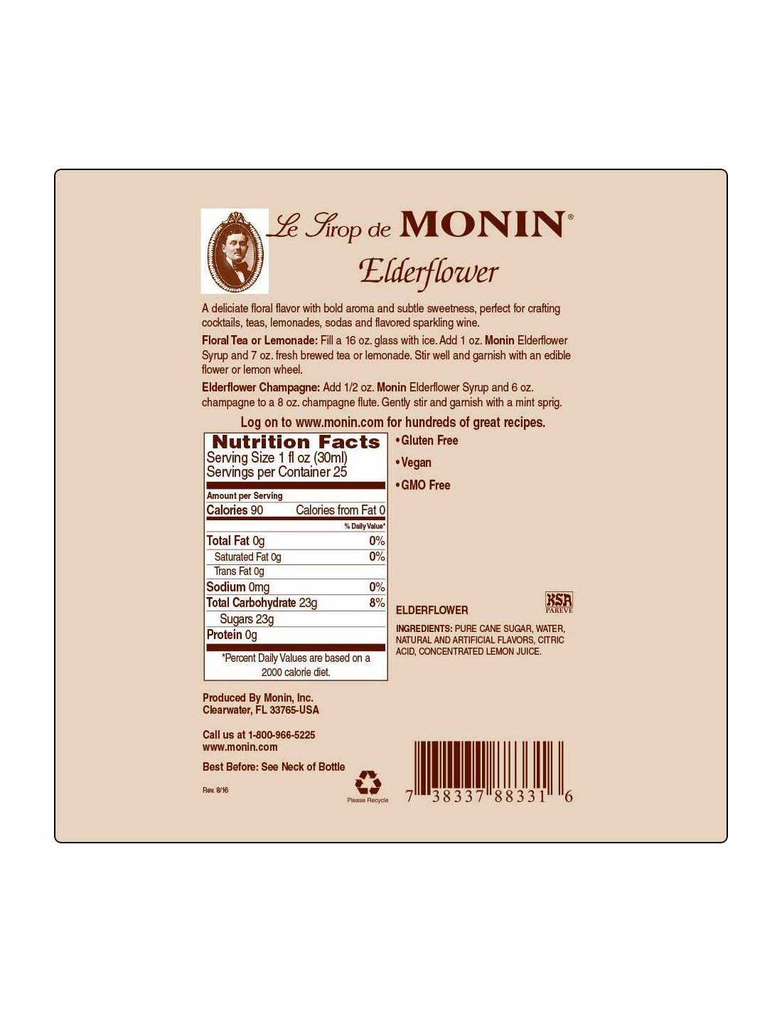 Este favorito europeo aporta su aroma delicado a una amplia variedad de recetas populares de comida y bebida. Nuestro Jarabe de Flor de Saúco da toques florales dulces a cócteles de vino espumoso y combina bien con el sabor a enebro del gin. El Jarabe de Flor de Saúco Monin ofrece dulzura floral a cócteles, tés, limonadas, refrescos y vinos espumosos saborizados. Aroma fresco y floral, con un sabor dulce afrutado que presenta notas de pulpa y cáscara de pomelo. Nuestros jarabes de flor de saúco son siempre libres de alérgenos, sin lácteos, sin gluten, Halal, Kosher, no contienen colorantes artificiales, ni conservantes artificiales, ni edulcorantes artificiales, y son no OGM.