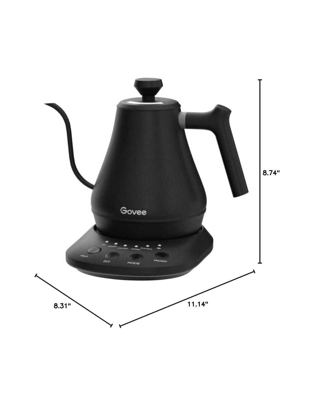 - 4 Presets Fáciles y Control de Mantenimiento de Calor: El hervidor inteligente Govee te permite preparar café y té como un profesional, con una app que te permite establecer tu temperatura deseada con precisión de 104 F (40 C) a 212 F (100 C). Además, la función de Mantenimiento de Calor mantiene automáticamente la temperatura del agua durante 2 horas completas. Haz del Hervidor Eléctrico de Cuello de Ganso tu compañero óptimo de preparación.