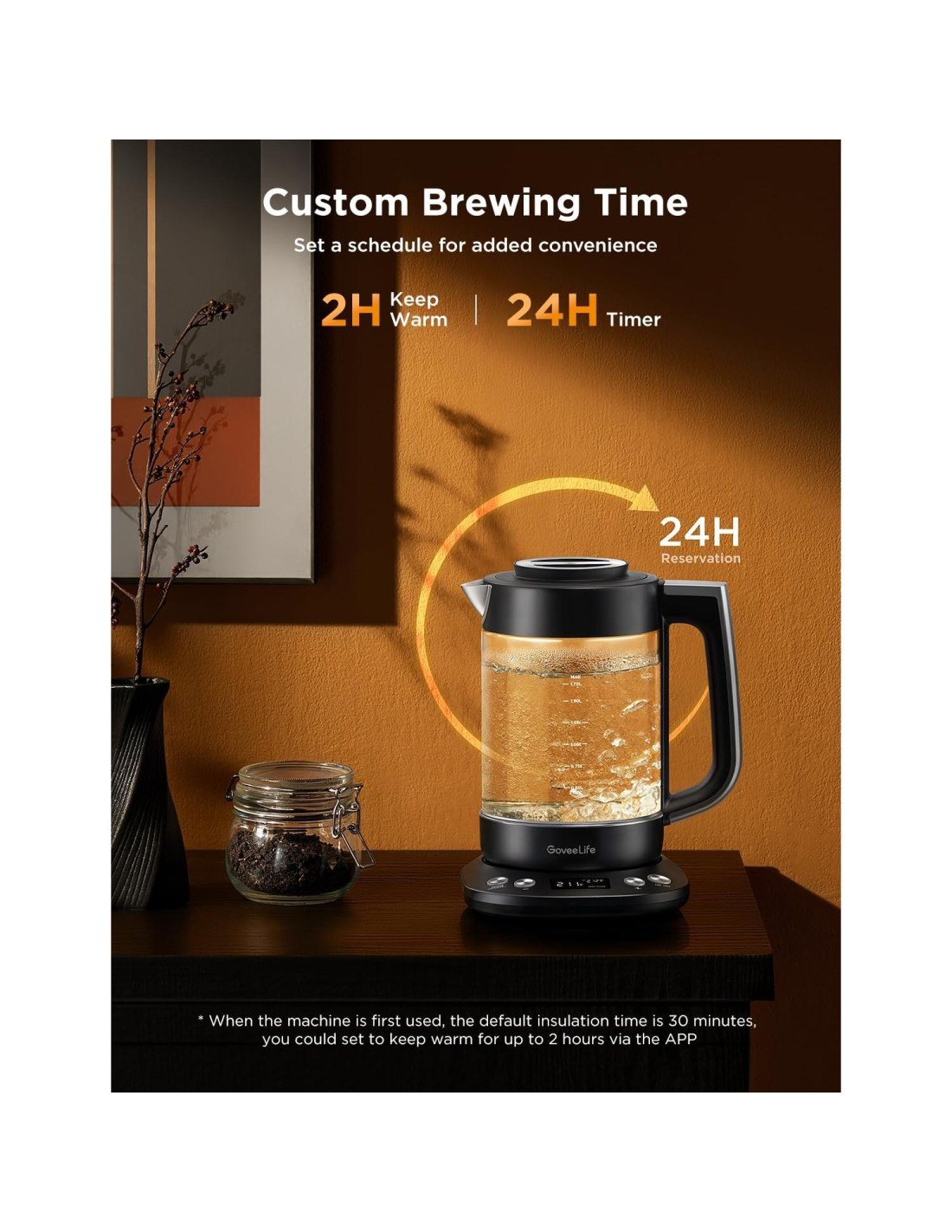 - Control Inteligente: Conecta tu hervidor eléctrico a la aplicación para programar y ajustar la temperatura en cualquier momento. Cuando hierva, recibirás una notificación. También puedes controlar el hervidor de té eléctrico por voz a través de Alexa y Google Assistant para mayor comodidad.