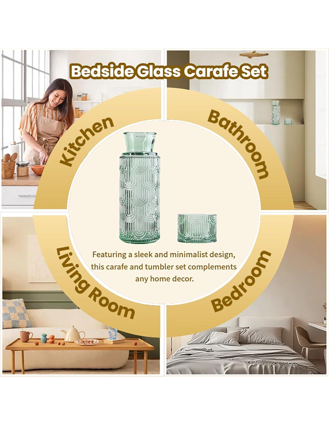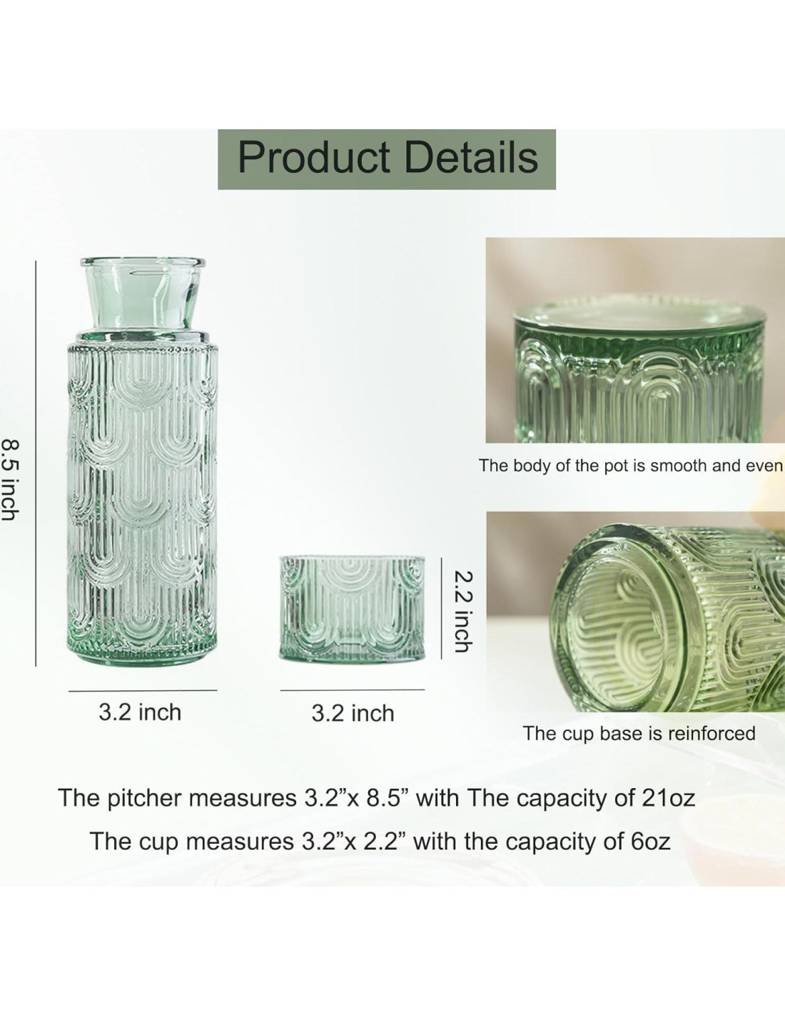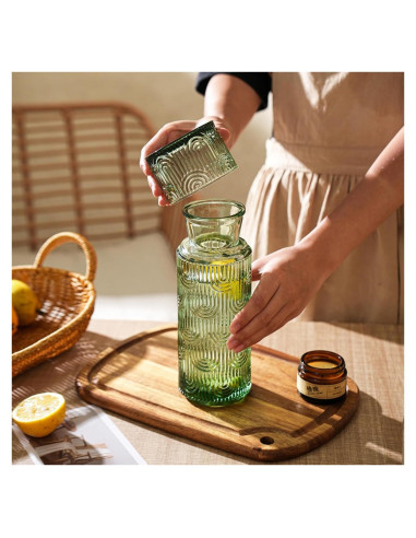 - MATERIAL PREMIUM: Esta Jarra de Agua de Noche está hecha de vidrio de alta calidad sin plomo, resistente al calor y al frío para tu mesita de noche, baño; un material duradero y confiable que resistirá la prueba del tiempo. El vaso se ajusta perfectamente, boca abajo, sobre la abertura de la jarra, manteniendo el contenido limpio y ahorrando espacio.