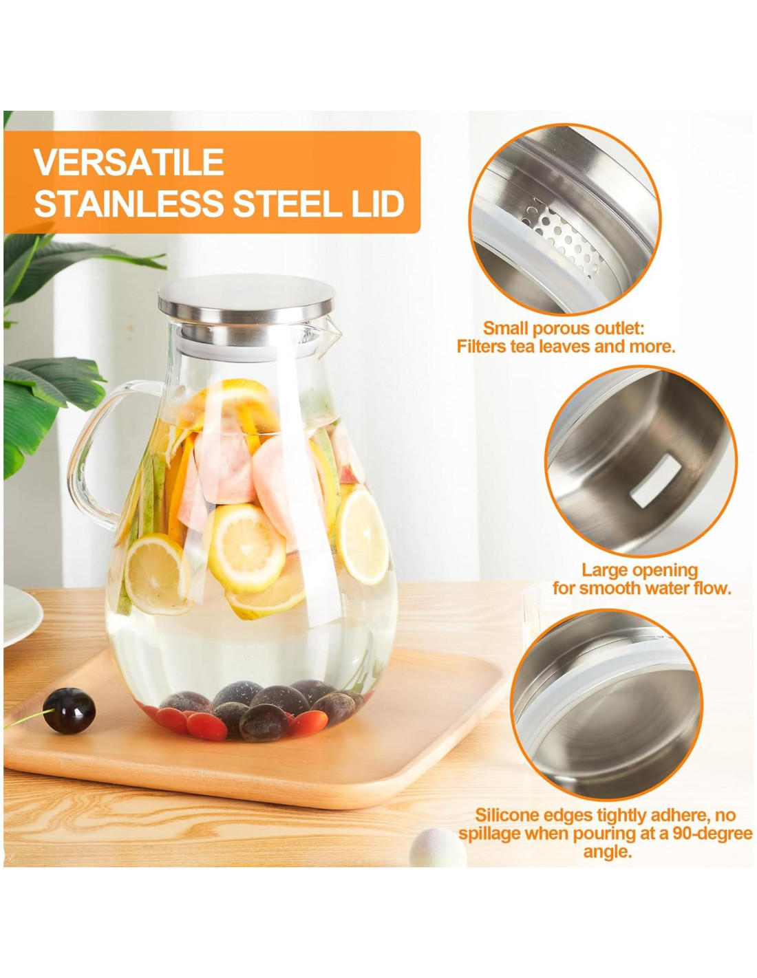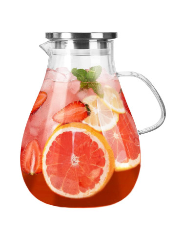 - Versátil para Cada Ocasión: Esta jarra de vidrio es tu opción ideal para cualquier evento. Ya sea que estés sirviendo limonada casera en un caluroso día de verano, organizando un brunch con jugos frescos, o simplemente manteniendo el agua fría en el refrigerador, nuestra jarra es lo suficientemente versátil para adaptarse a una amplia gama de ocasiones.