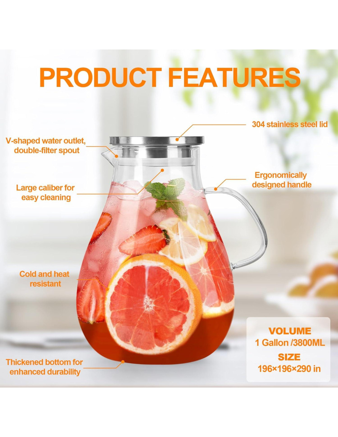 - Generosa Capacidad de 1 Galón (3.78 Litros): Nuestra Jarra de Vidrio con Tapa ofrece una impresionante capacidad de 1 galón, lo que la convierte en el compañero perfecto para reuniones, fiestas y cenas familiares. Di adiós a los constantes rellenos y hola a abundantes refrescos que satisfacen la sed de todos.