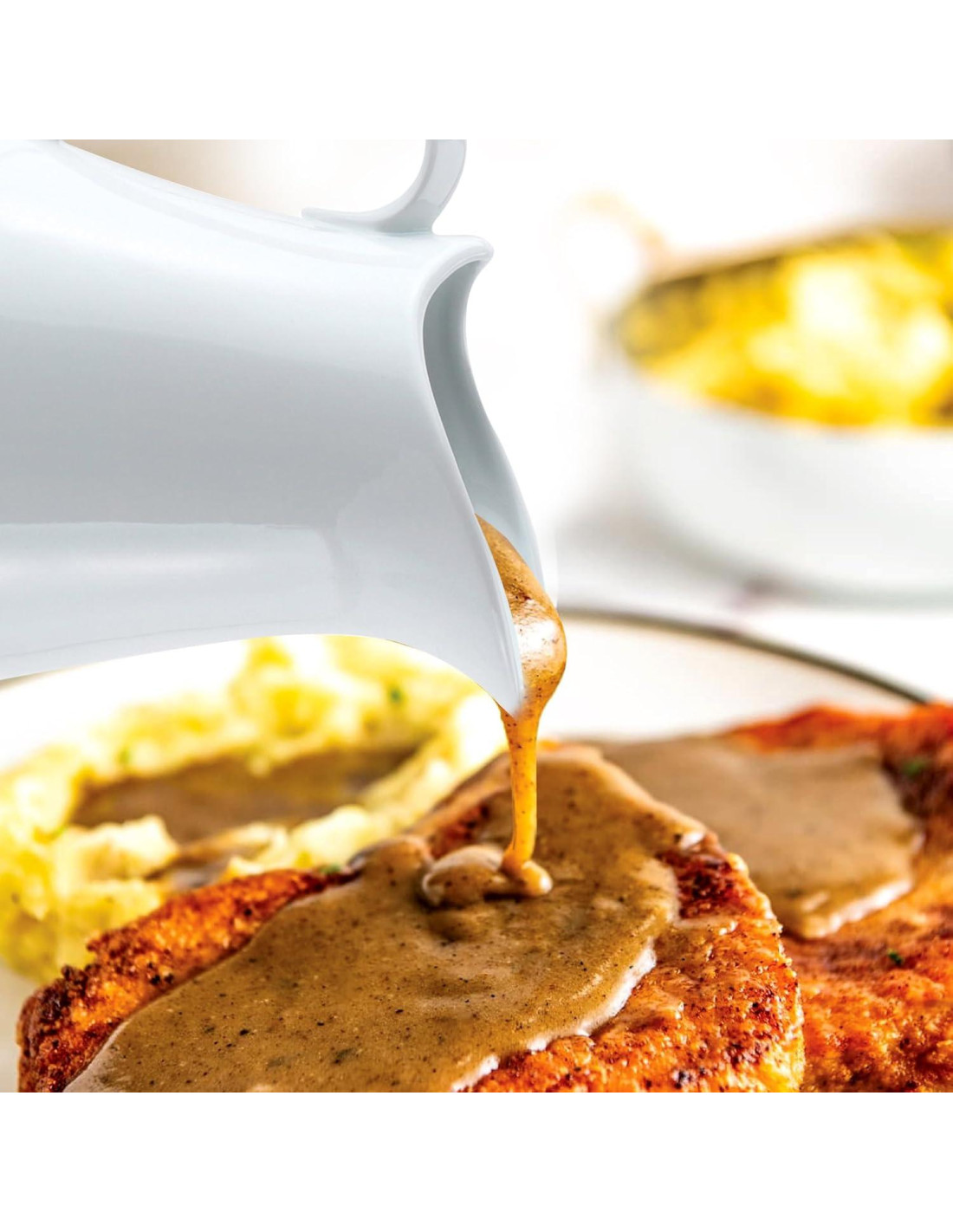 - Vertido sin goteo para menos desorden; también para servir aderezos para ensaladas y contenidos calientes o tibios, como jarabe de arce caliente, mantequilla derretida, au jus y salsas