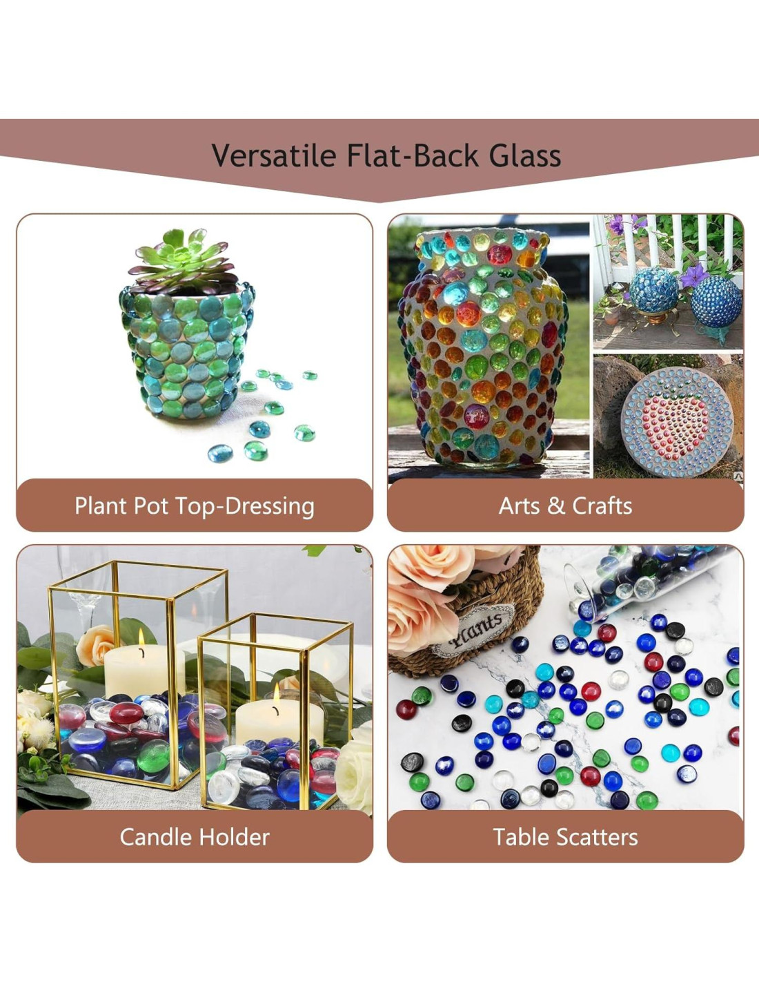 2 LB de perlas de vidrio planas (aprox. 140pcs). ¡Perfecto para anclar flores en el jarrón! Estas canicas de vidrio presentan hermosos colores, efectos translúcidos y tonos iridiscentes. Estos guijarros de vidrio lustrosos son excelentes decoraciones para acuarios. Además, los bordes redondeados y suaves NO lastimarán a los peces. Estas hermosas canicas planas harían que prácticamente cualquier proyecto artístico sea más atractivo y llamativo. Tal vez sea tu arte mural, arte en resina, arte en vidrio, arte en lienzo, arte en cerámica... Estas perlas de vidrio de colores son resistentes al calor, y por lo tanto podrían usarse como perlas de vidrio para fuego. Un templado y filtrado únicos aseguran una calidad confiable. Te darás cuenta de que además de su increíble apariencia, estas perlas de vidrio pueden ser funcionales de múltiples maneras. Puedes usarlas como dispersión en mesas de fiesta, dispersión en bandejas de tocador, soporte para velas, cubierta para macetas, rocas para paisajismo de jardines / fuentes...