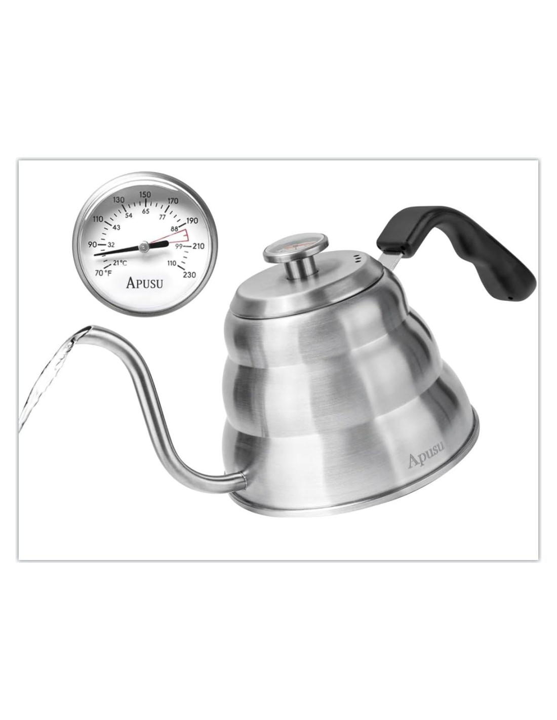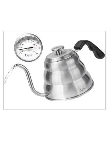 - TERMÓMETRO INCORPORADO - UNA NECESIDAD PARA OLLAS DE INFUSIÓN MANUAL: Si prefieres un hervidor de café con termómetro, ¡esta será tu elección correcta! El termómetro de la cafetera es muy fácil de leer, lo que te permite monitorear la temperatura del agua a medida que alcanza el nivel deseado, preparando así un delicioso café. Te ayuda a preparar café perfecto a la temperatura óptima (90-96C). ¡Un gadget imprescindible para los entusiastas del café filtrado!