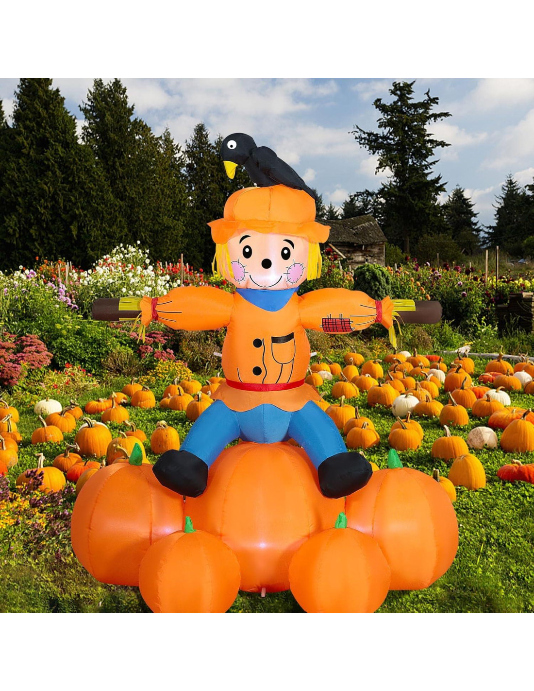 - ESPANTAPÁJAROS INFLABLE: Joliyoou presenta un espantapájaros atado a una cruz de madera, sentado sobre montones de calabazas con un cuervo en su cabeza. Los diseños y costuras tienen detalles maravillosos con una artesanía exquisita y confiable. Este inflable definitivamente destacará su día de otoño.