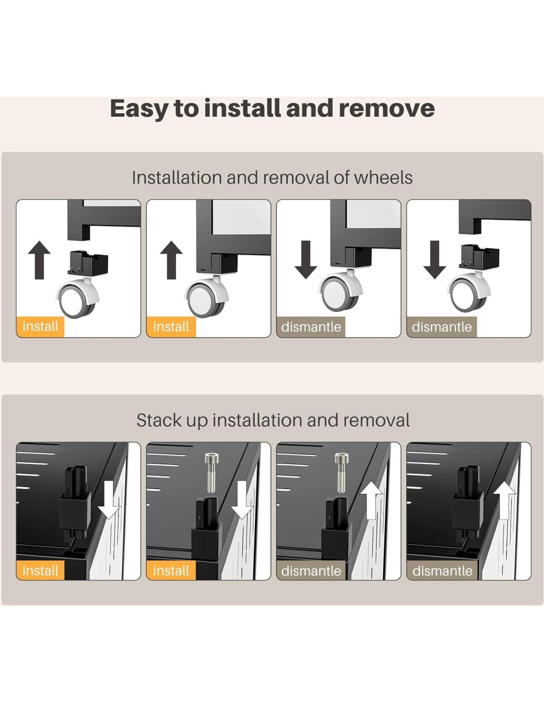 - Instalación fácil: Alinee la ranura entre la rueda universal y la jaula metálica, luego use las herramientas que proporcionamos para apretarla. Instale el accesorio de la jaula en la parte superior de una jaula metálica primero, y luego instale el agujero de alineación de la segunda jaula metálica para realizar el apilamiento de la jaula.