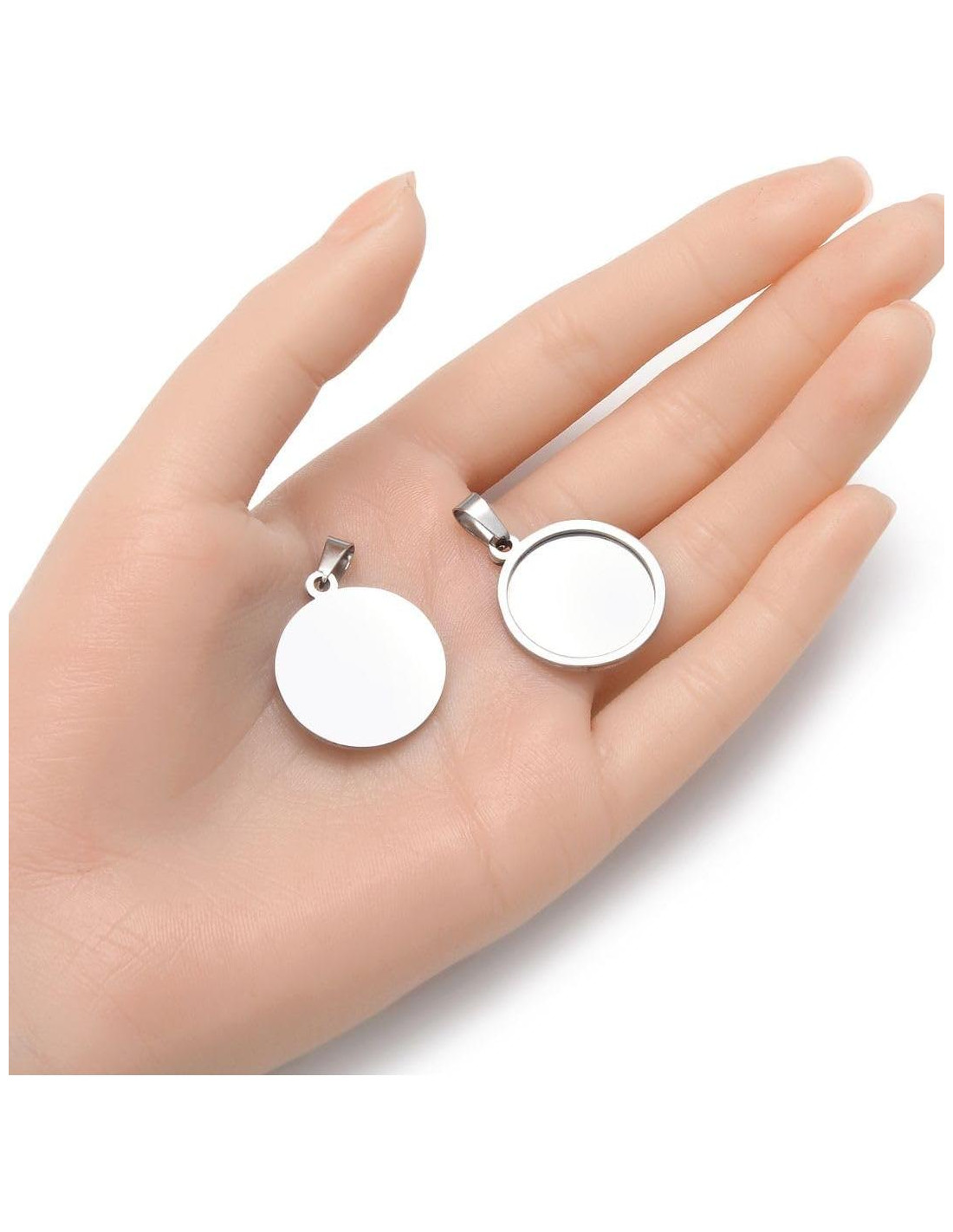 - Diseñado para cabochón o cuenta de 20mm (0.79 pulgadas), diámetro interno de la bandeja 20mm (0.79 pulgadas), diámetro externo de la bandeja ~ 23mm (0.91 pulgadas), anillo de colgante ~ 9.5mm x 3.5mm (0.37 pulgadas x 0.14 pulgadas)