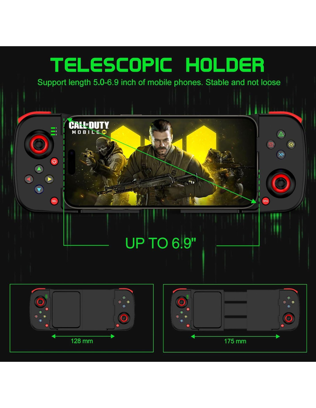 - Compatibilidad Universal: El controlador de juegos para teléfono funciona sin problemas con teléfonos iPhone y Android, incluyendo iOS 15+/Android 10+; Completamente adecuado para toda la gama de iPhone 16/15/14/13 y así sucesivamente; El controlador Bluetooth para android es compatible con la serie Galaxy S, la serie Galaxy A y más teléfonos inteligentes Android