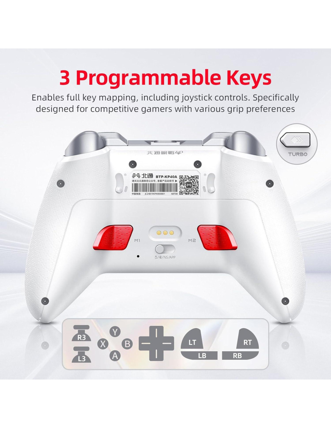 - [Cambio Multi-Plataforma en 1 Tecla] Funciona con PC, Switch/Switch 2, Steam, iOS y Android, cambia fácilmente entre modos con el botón de plataforma trasero. Asegura una experiencia fluida y sin retrasos, perfecta para juegos competitivos entre plataformas. Ofrecido con conexiones por cable, bluetooth y inalámbricas de 2.4GHz. Tasa de muestreo de 1000Hz+ (por cable/dongle de 2.4G) para tiempos de respuesta más rápidos.