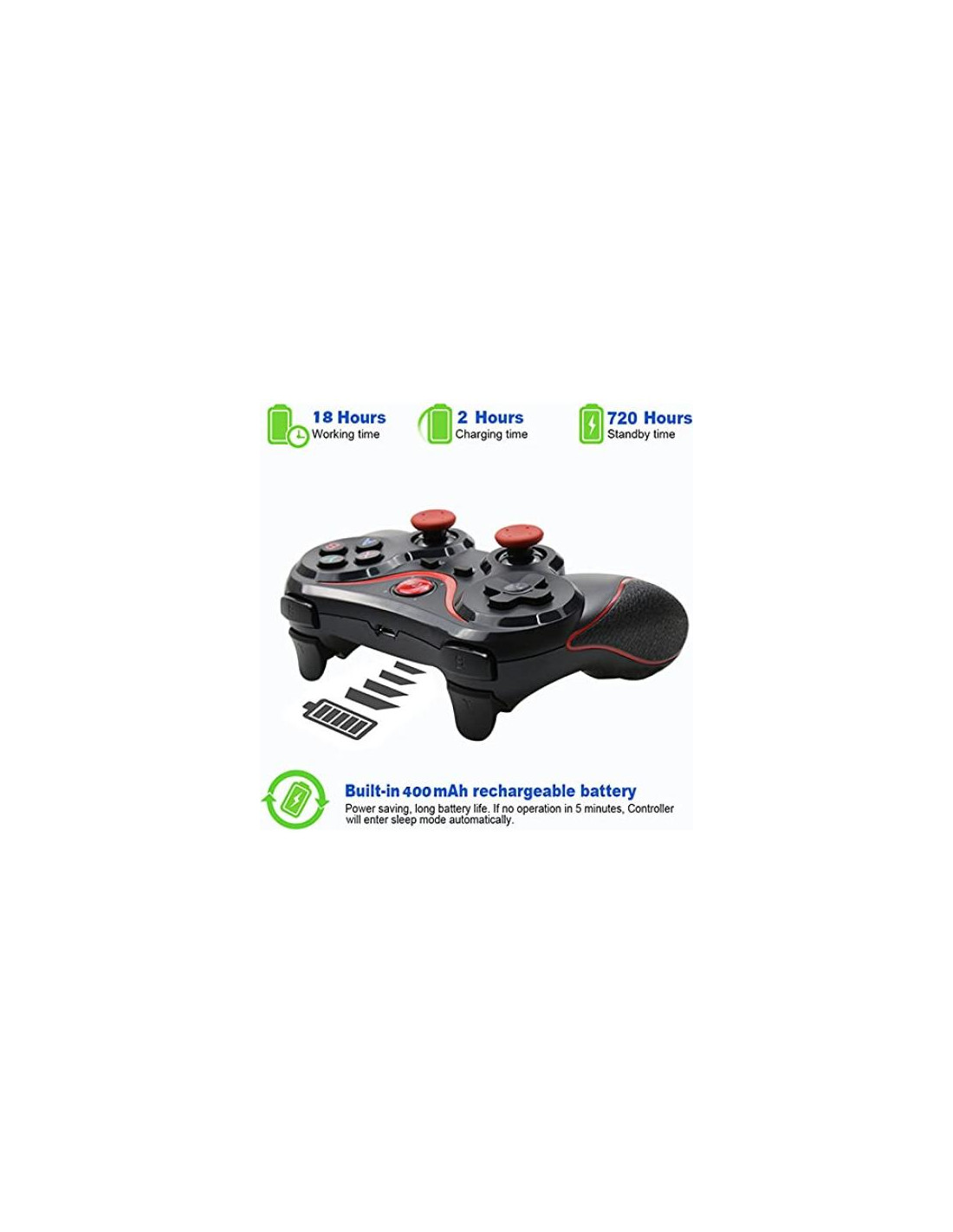 - LARGA VIDA ÚTIL DE LA BATERÍA - El controlador bluetooth para android viene con una batería recargable de gran capacidad de 400mAh que te permite jugar más de 18 horas después de una carga completa. El soporte para el dispositivo puede ajustarse de 5.49 a 9.29 cm, soporta pantallas de teléfonos de 10.16 a 17.78 cm.