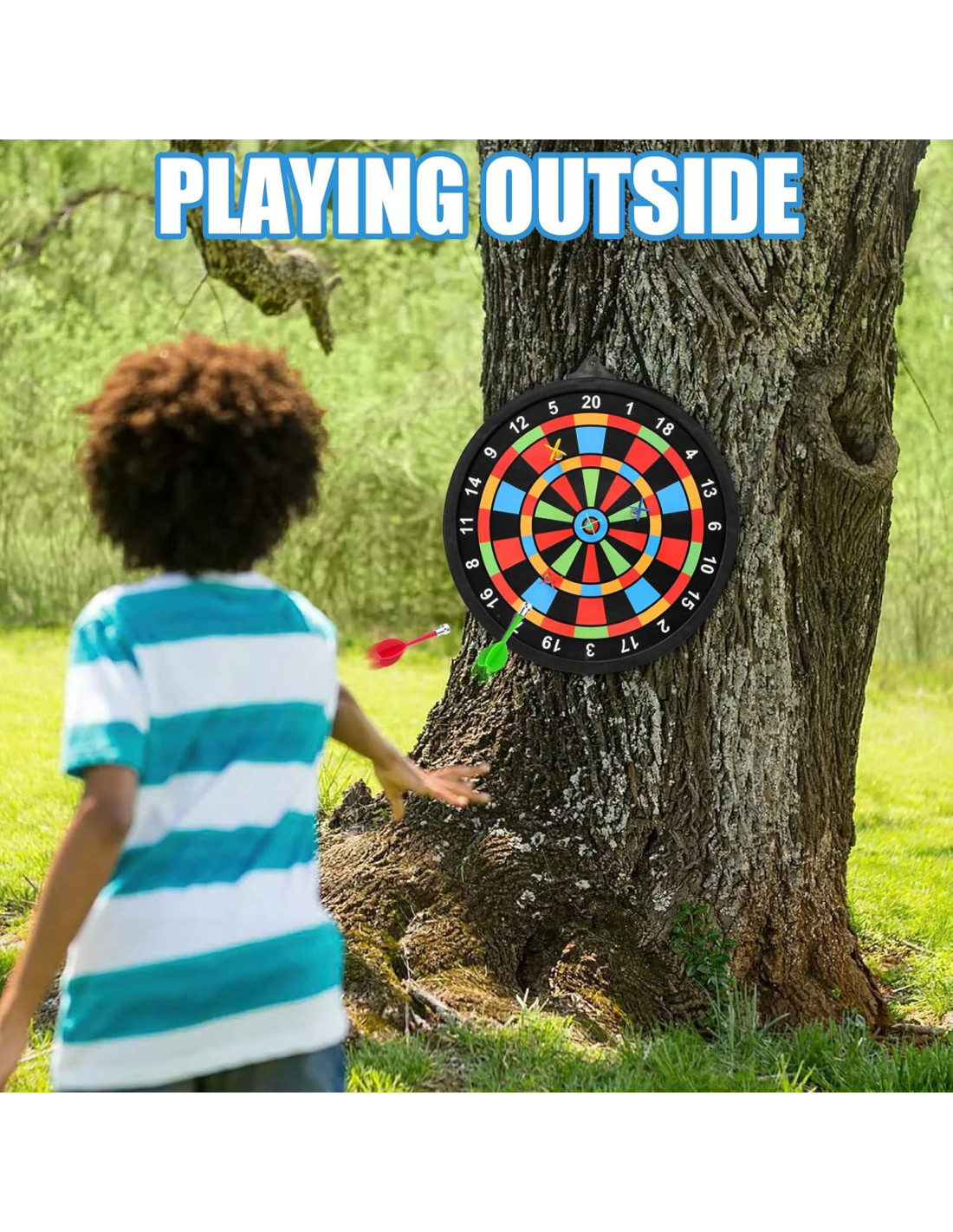 - TABLERO DE DARDOS DOBLE CARA: Nuestro tablero de dardos presenta un diseño tradicional en un lado y un objetivo de tiro con arco en el opuesto, viene con 12 dardos magnéticos fuertes y seguros, 2 ganchos adhesivos y un manual de usuario para ayudar a los niños a comenzar rápidamente.