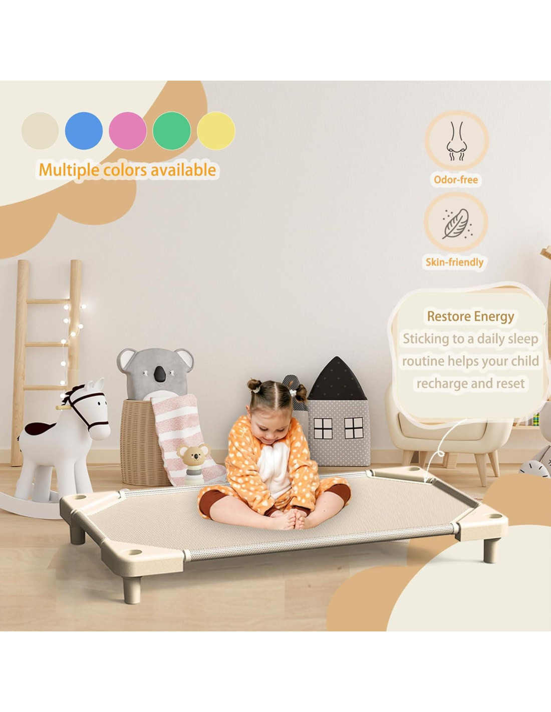 - Cama de siesta versátil y que ahorra espacio. Nuestra cama de malla de arena transpirable se adapta a los contornos del cuerpo de los niños, mejorando la calidad del sueño. Su diseño ligero permite una fácil portabilidad, lo que la hace perfecta para guarderías, camping, relajación en la playa o como cama de invitados de emergencia. Además, múltiples camas se pueden apilar juntas, ahorrando significativamente espacio.