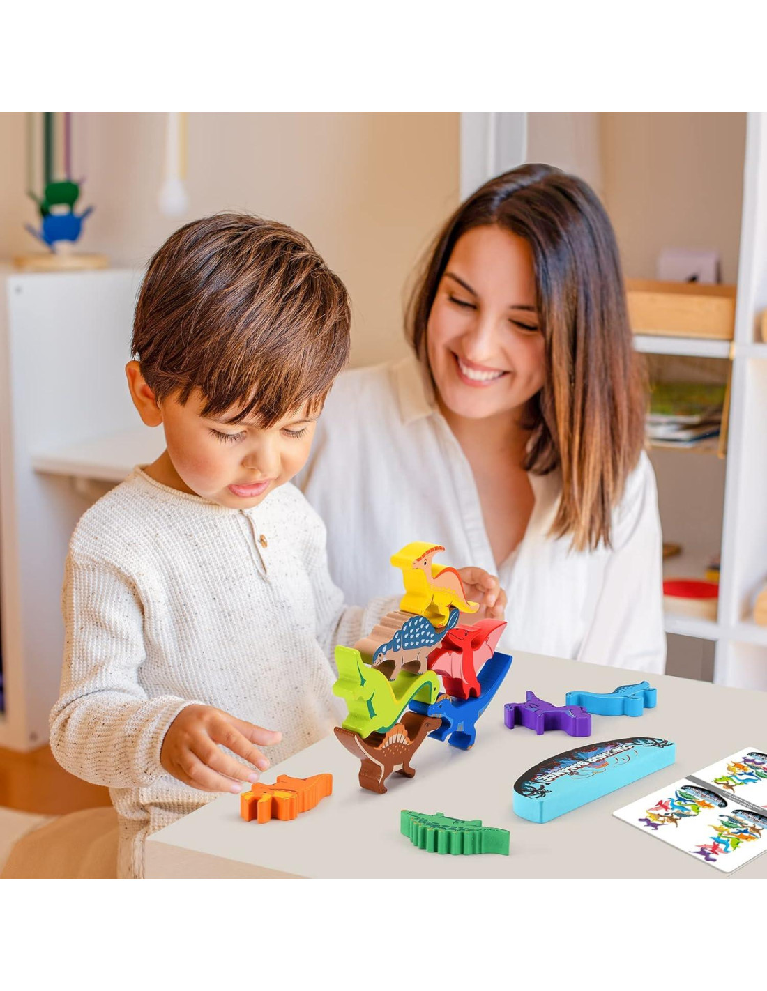 - Juego Familiar: El conjunto de dos bloques de dinosaurio apoya un juego de competencia de equilibrio para niños y adultos, veamos quién puede apilar más alto