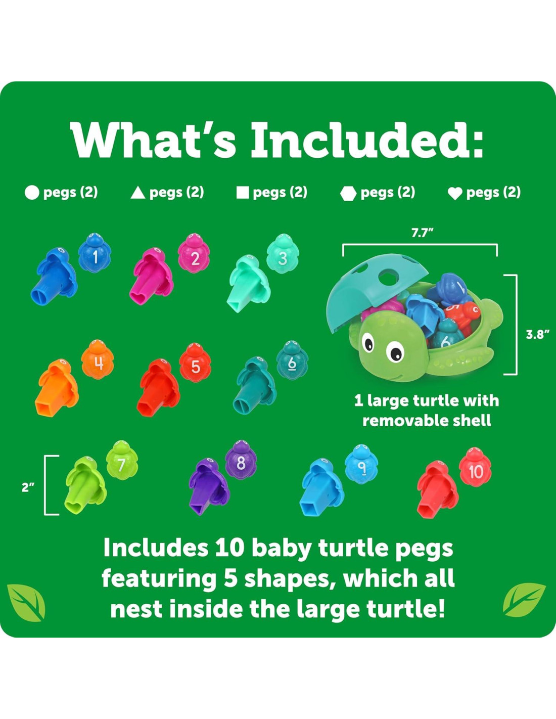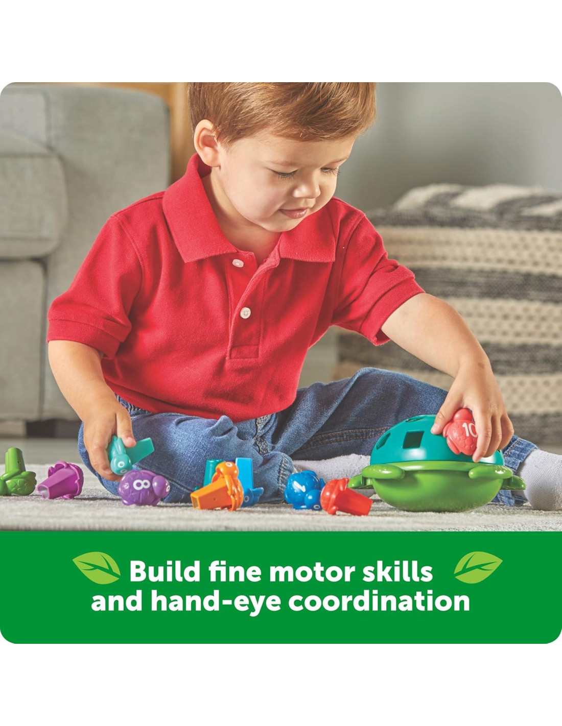 ¿Buscas una manera fácil de ayudar a los niños a aprender habilidades motoras finas? ¡Mira este clasificador de formas marino para niños pequeños! Los niños clasifican cada tortuga marina bebé por forma mientras las colocan en el caparazón de Seymour para que puedan acompañarlo en una aventura de aprendizaje. ¿Qué más pueden aprender los niños de Seymour? Este juguete de preescolar también enseña conteo e identificación de colores, y fortalece las habilidades motoras finas; lo mejor de todo, la guía de actividades ecológica y los componentes de plástico reciclado duradero ayudan a los niños a construir una mejor comprensión del mundo natural. El caparazón de Seymour también funciona como un cajón de almacenamiento todo en uno: ¡todas las tortugas bebés se guardan dentro para mantener nuestras áreas de juego, como nuestros océanos, limpias! Seymour La Tortuga de Formas Contando es una adición fácil a las colecciones de juguetes Montessori y manipulativos para niños. Somos Recursos de Aprendizaje, y aprender es donde jugamos. Ya sea que estemos ayudando a los niños pequeños a aprender sus ABC y 123, enseñando a los niños de jardín de infantes las bases de las habilidades motoras finas y sociales-emocionales, o introduciendo habilidades STEM y de codificación listas para la escuela primaria, nuestros juguetes educativos galardonados ayudan a los niños a descubrir formas divertidas y fáciles de aprender, jugar y crecer. Por eso los padres, maestros y terapeutas ocupacionales confían en nosotros. ¡Mira todos nuestros juguetes más queridos en nuestra tienda de marca! ¿Cuáles son las principales habilidades que los niños pueden aprender con este juguete? Seymour La Tortuga de Formas Contando ayuda a los niños a desarrollar el reconocimiento de formas y habilidades motoras finas. ¿Qué tan grande es este juguete? Montado, Seymour y su tortuga bebé miden 15.88 cm de largo x 15.88 cm de ancho x 10.8 cm de alto. ¿Cuántas piezas se incluyen con este juguete? Este conjunto incluye 12 piezas. ¿De qué está hecho este juguete? Nuestros juguetes están hechos de plástico duradero y fácil de limpiar, diseñado para años de diversión de aprendizaje. Este juguete cumple con las regulaciones de plomo de la EPA. ¿Dónde puedo conseguir una pieza de repuesto? Aunque no podemos tener repuestos para cada componente que viene con nuestros juguetes, haremos nuestro mejor esfuerzo para encontrar la parte o pieza que haga que tu juguete esté completo nuevamente. Simplemente envía una solicitud aquí con una descripción de la pieza, y te haremos saber si y cuándo la encontramos.