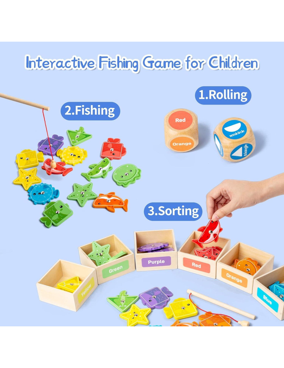 - Imanes de Doble Cara: Usando imanes sellados de doble cara, puede atraer mejor los peces de madera y no se caerán a mitad de camino. Juguetes de aprendizaje, ayudan a ejercitar las habilidades motoras de los niños, la coordinación mano-ojo y la capacidad de emparejamiento de formas y colores