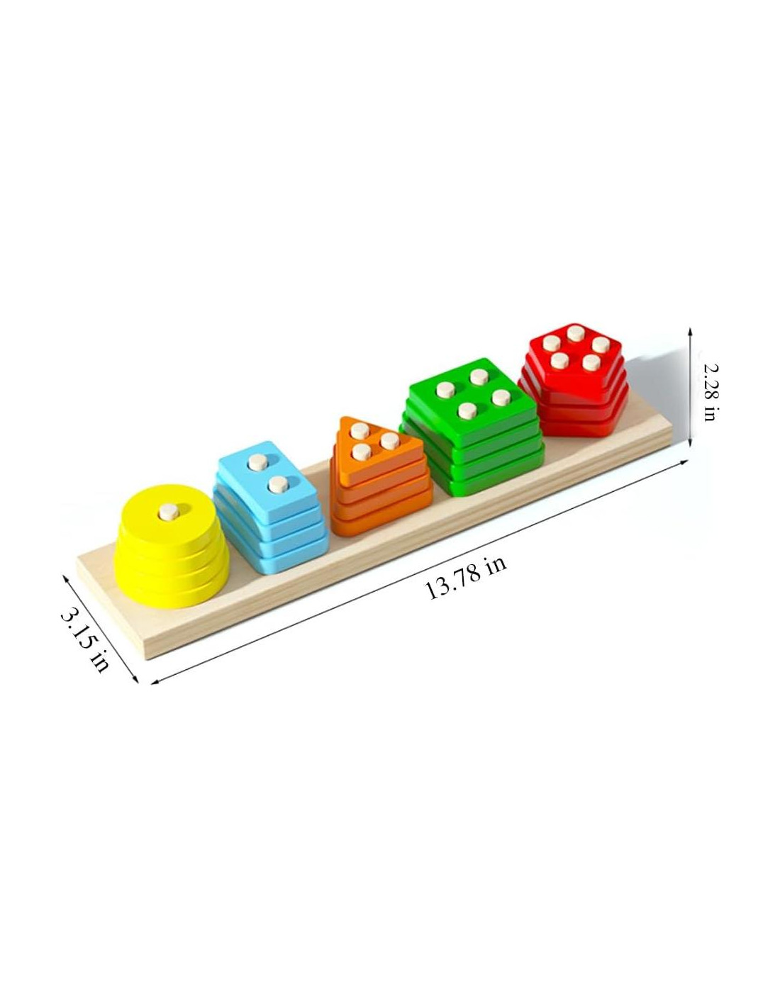 - JUGUETES DE APILAMIENTO PARA NIÑOS PEQUEÑOS DE 2-4: El paquete incluye 1 caja y 1 juguete clasificador de formas de madera. Este juguete de clasificación y apilamiento incluye 20 bloques de construcción en forma, 5 formas de 5 colores diferentes 4 piezas cada una.