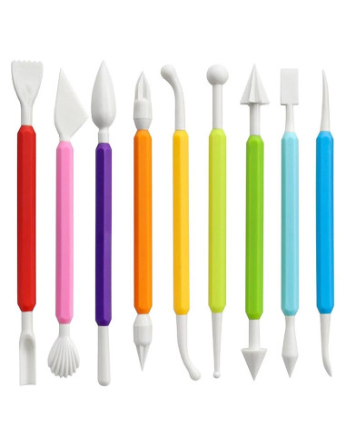 - Componentes incluidos: 9 herramientas de cerámica de color