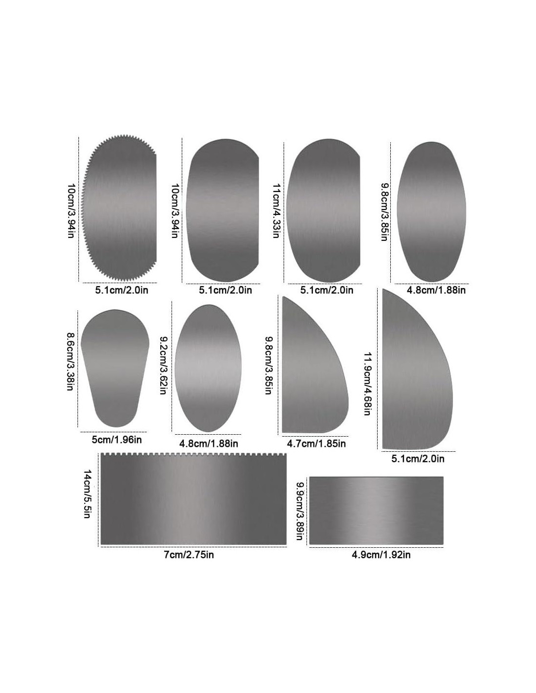 - El paquete incluye 10 piezas de diferentes formas de herramientas de raspado de acero inoxidable.
