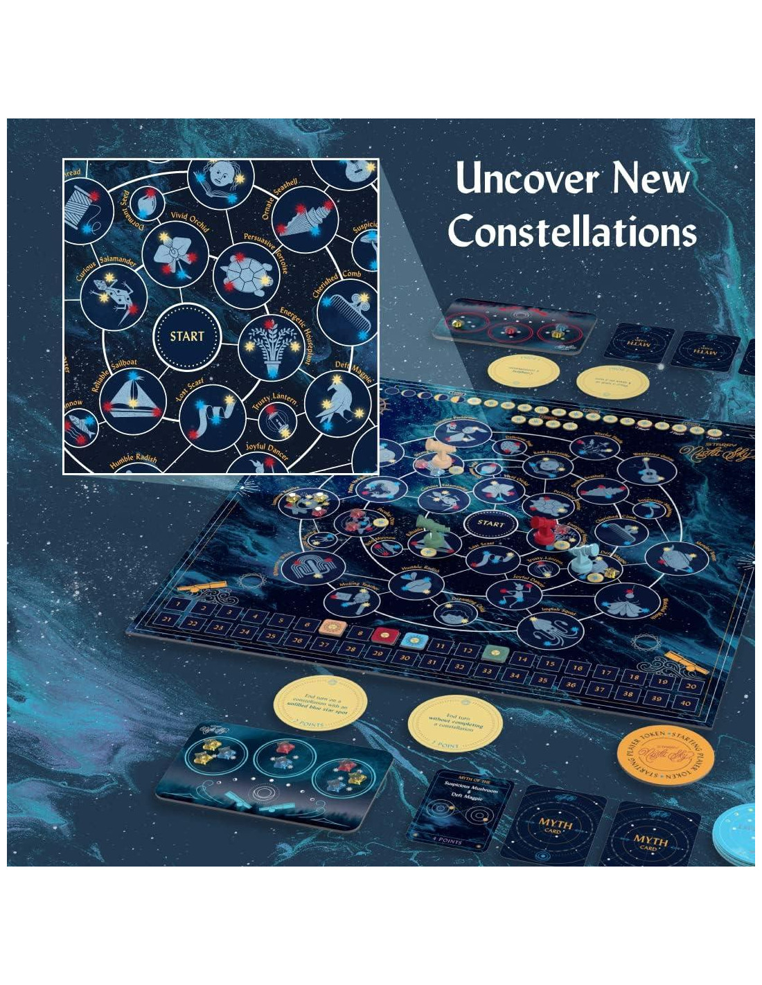 - Diseñado por Emma Larkins: ¡Sumérgete en la experiencia de la propia diseñadora del juego! Emma Larkins aporta su pasión por la astronomía y su amor por los juegos para crear una fusión perfecta de diversión, educación y maravilla cósmica en este juego de mesa.