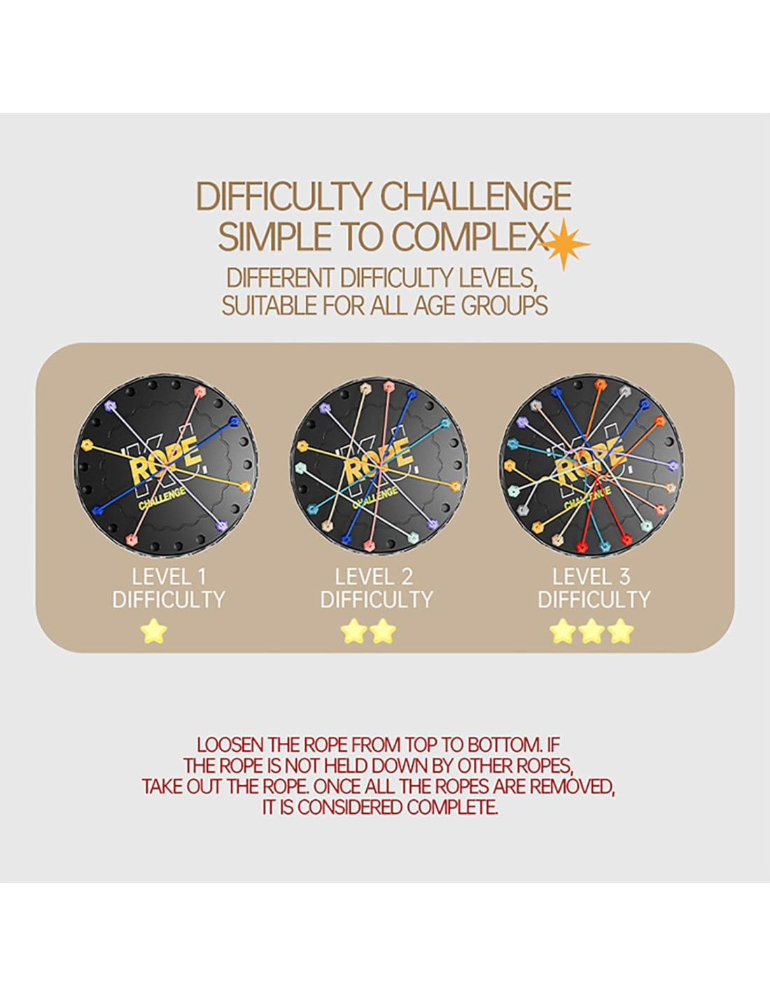 - Dificultad de Múltiples Niveles para Todas las Edades: "Desde juegos de mesa simples para niños (3-4 cuerdas) hasta rompecabezas complejos para adultos (laberintos de 10 cuerdas), ¡este juego crece contigo! Más nudos = desafíos más difíciles, ¡perfecto para los fanáticos de los juegos de mesa basados en estrategia!"