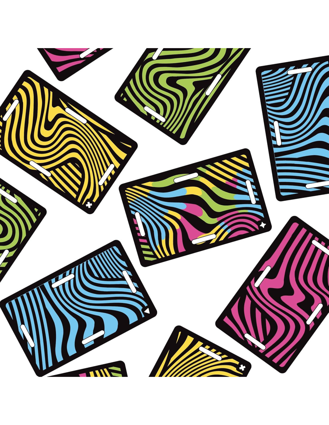 - AMIGABLE CON DALTÓNICOS: Cada uno de los cinco tipos de cartas tiene un símbolo diferente en la esquina, correspondiente a cada color.