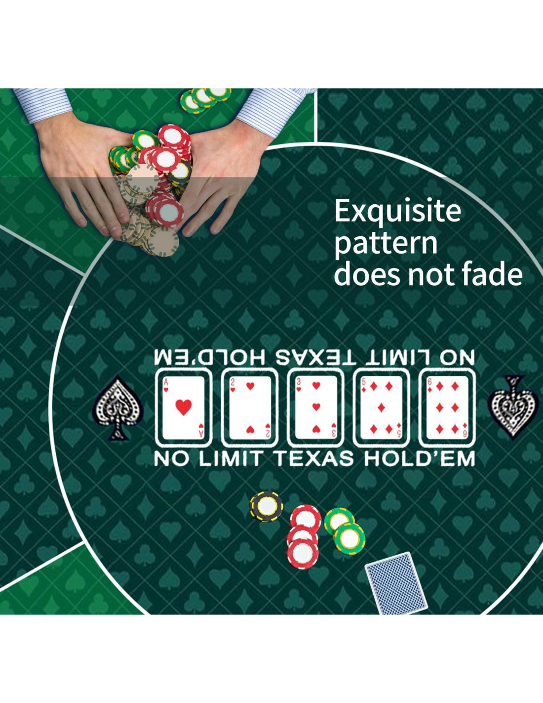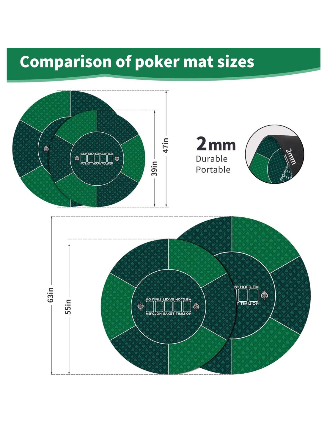 - Alfombrilla de Póker Redonda para Múltiples Personas: Nuestra alfombrilla de póker redonda proporciona una superficie de juego silenciosa y antideslizante. El tamaño de la alfombrilla de la mesa de juego es 160*160 cm. Hay múltiples tamaños para elegir, y la alfombrilla de la mesa de juego tiene un tacto suave que puede mantenerse en su lugar durante el juego. La alfombrilla de la mesa de juego de 2 mm de grosor se puede plegar fácilmente y se puede desplegar inmediatamente para jugar.