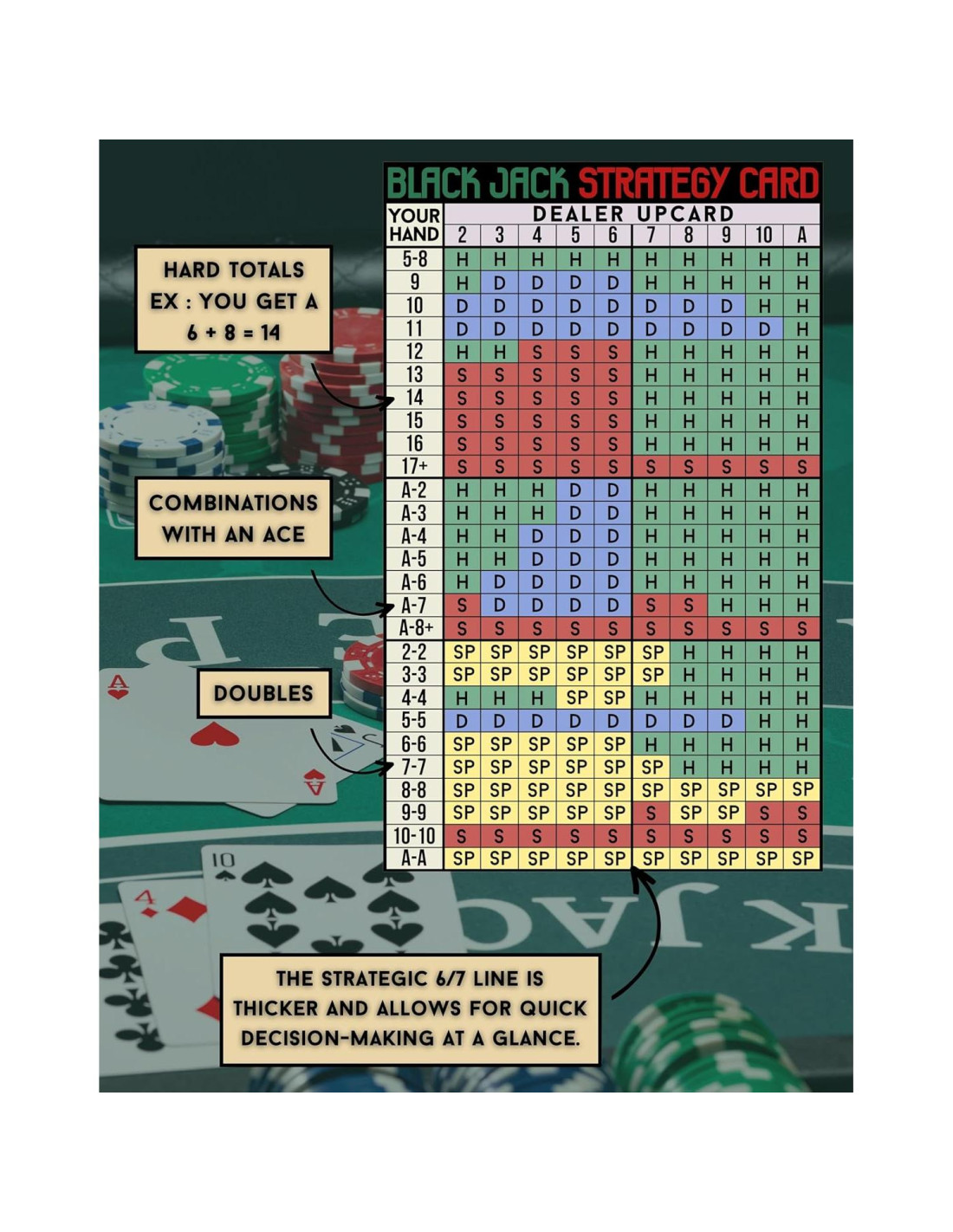 - Esta tarjeta de plástico de estrategia básica de BLACKJACK te permitirá reducir instantáneamente la ventaja del casino a un mero 1%.