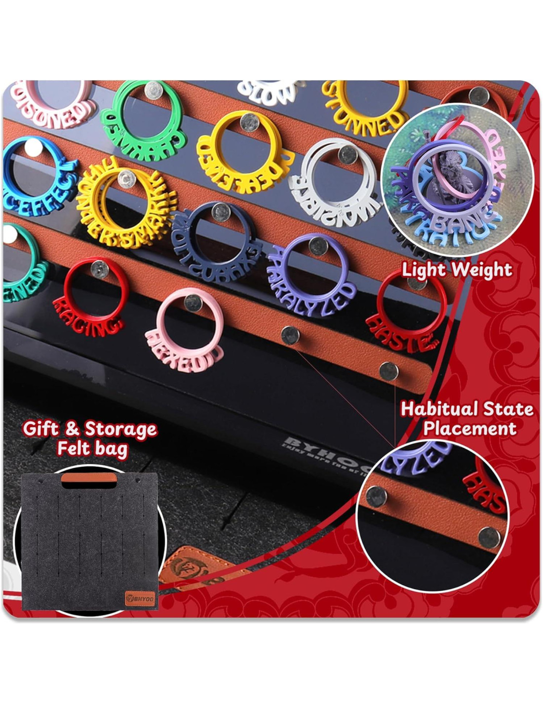 - [112 PCS en 28 Estados] Byhoo 112 Pcs anillos de condición DND para cubrir 28 tipos de marcadores de estado DND que se utilizan comúnmente en juegos de mesa. Este accesorio de DND tiene 4 estados más, como Lento y Maleficio, que otros marcadores de condición DND. Cuando tu personaje se encuentra con un ataque enemigo o lanza un hechizo, el kit de inicio DND de Byhoo 112 Pcs puede ayudarte a gestionar y ajustar tu estrategia de batalla.